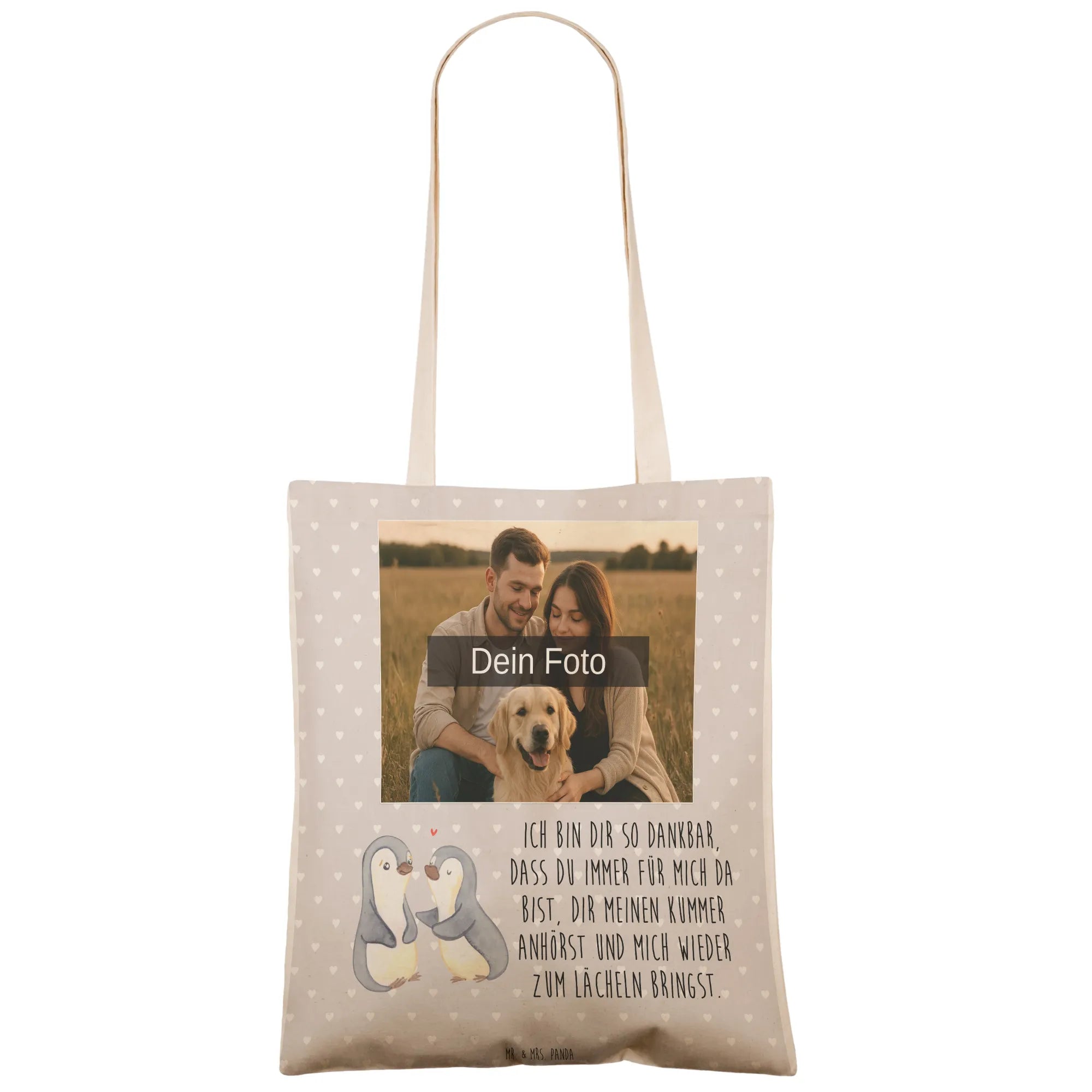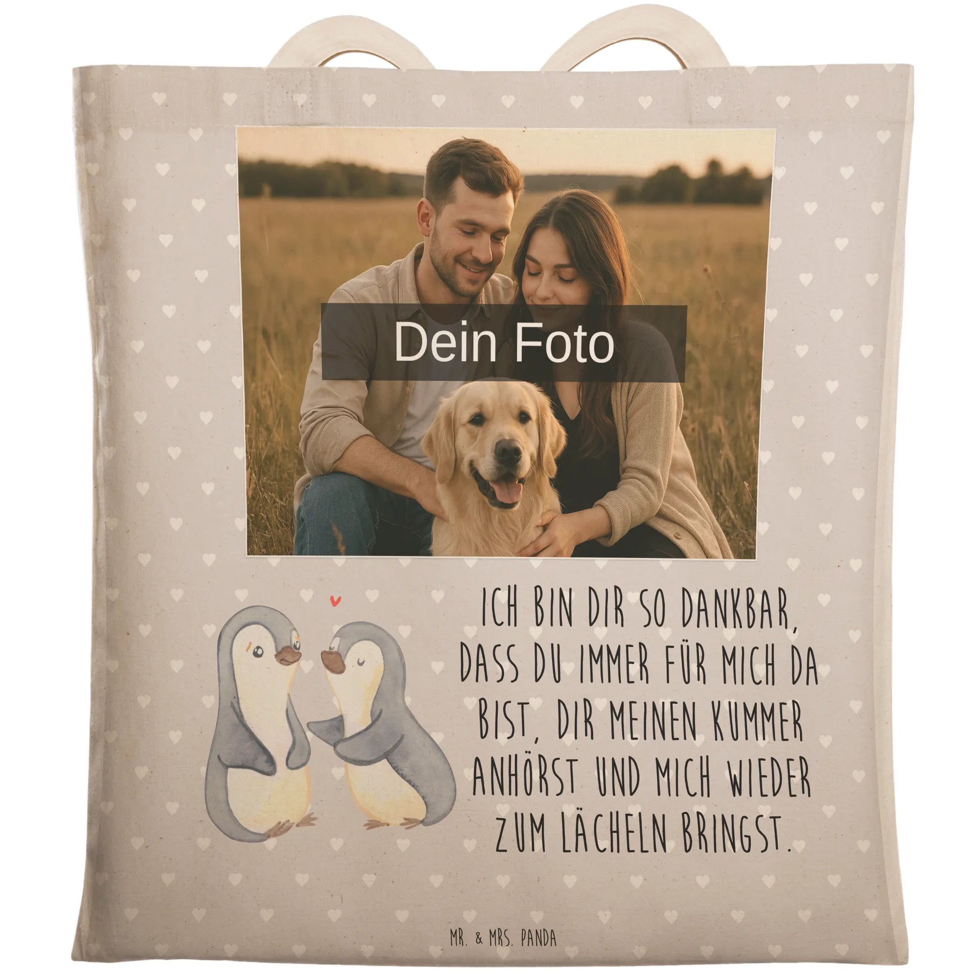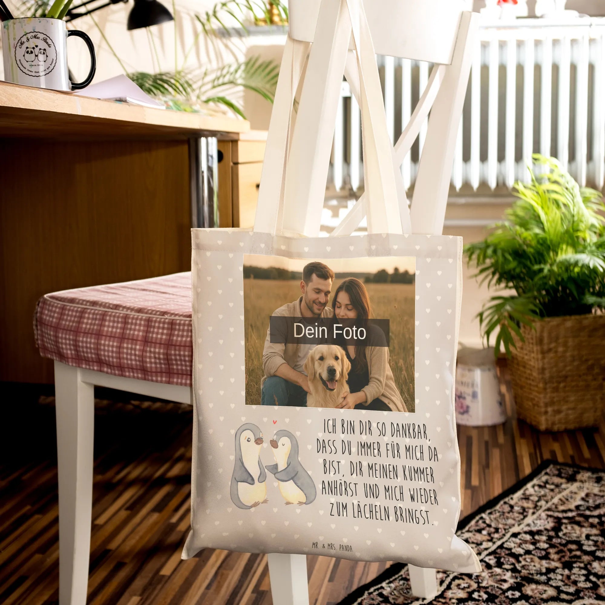 Personalisierte Foto Einkaufstasche Pinguine trösten