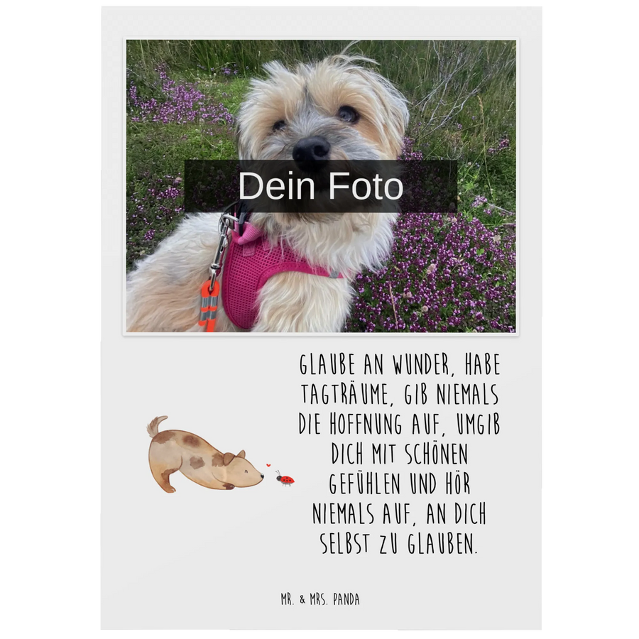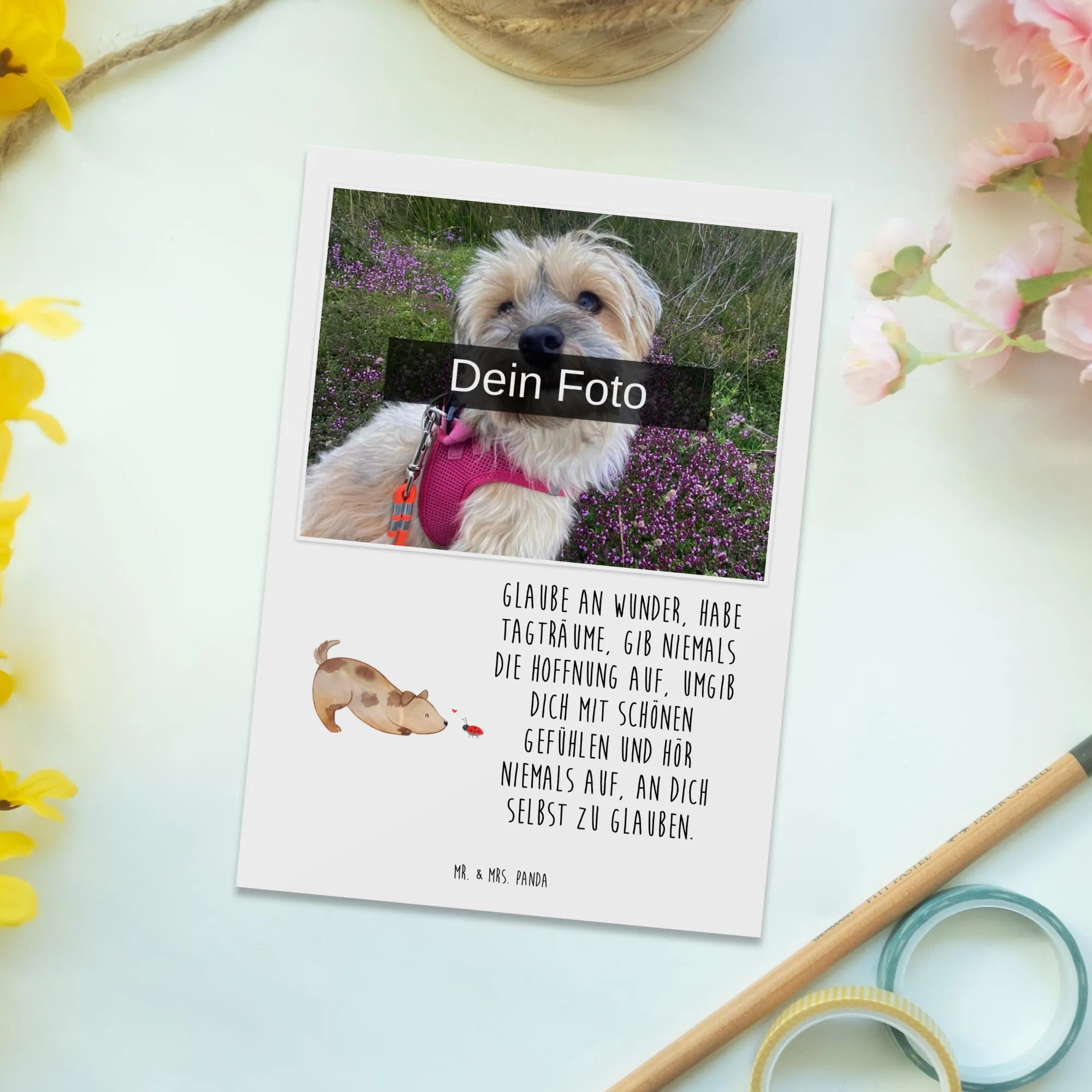 Personalisierte Foto Postkarte Hund Marienkäfer