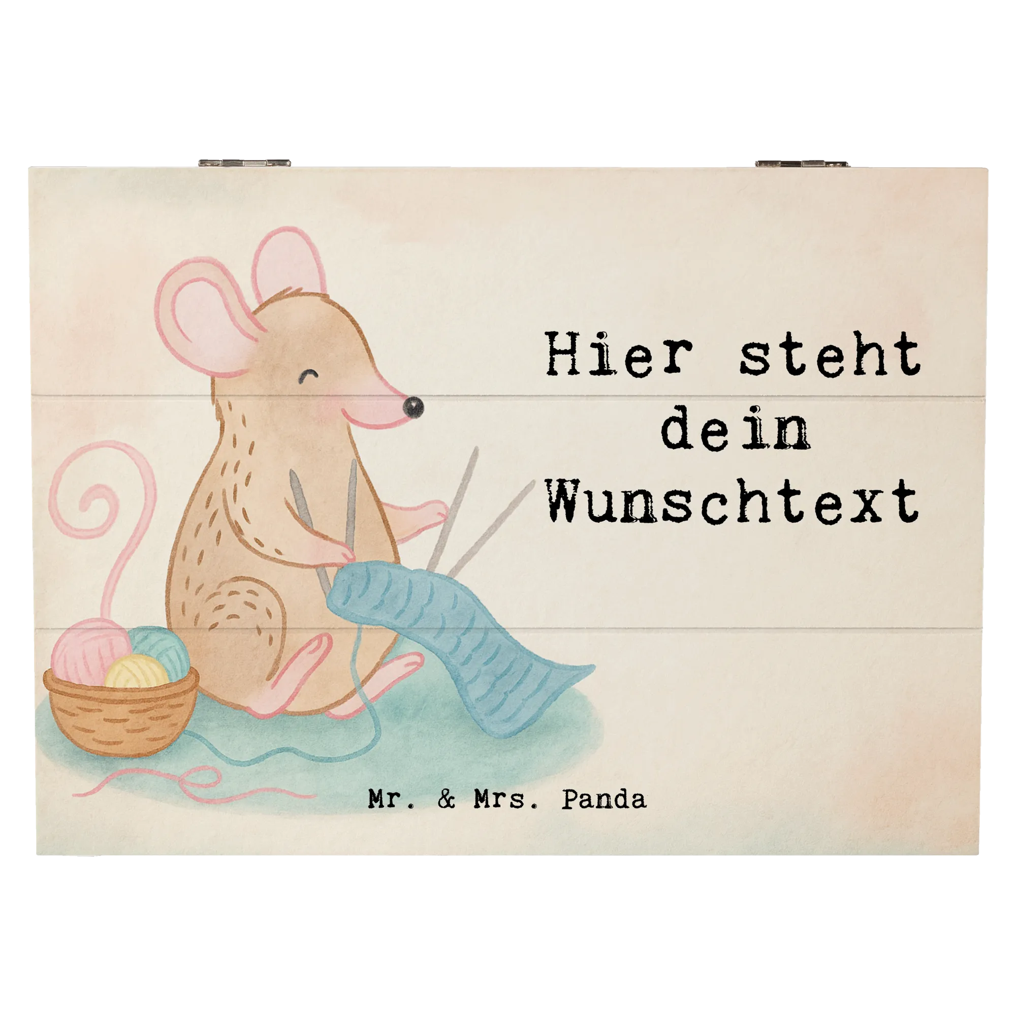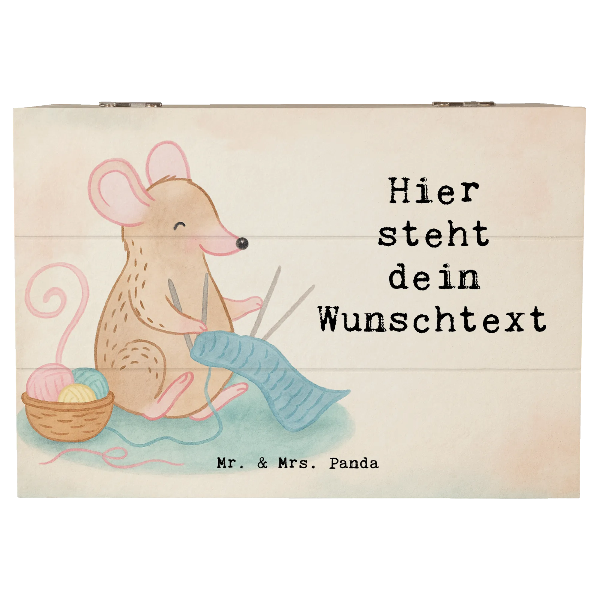 Personalisierte Holzkiste Maus Stricken Design - 22 x 15 cm
