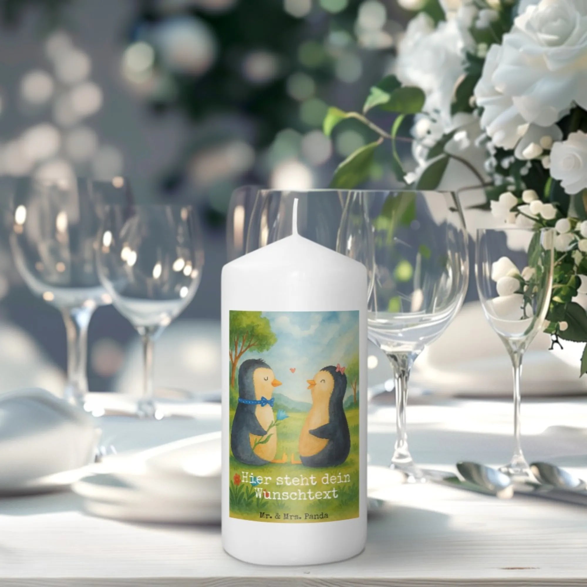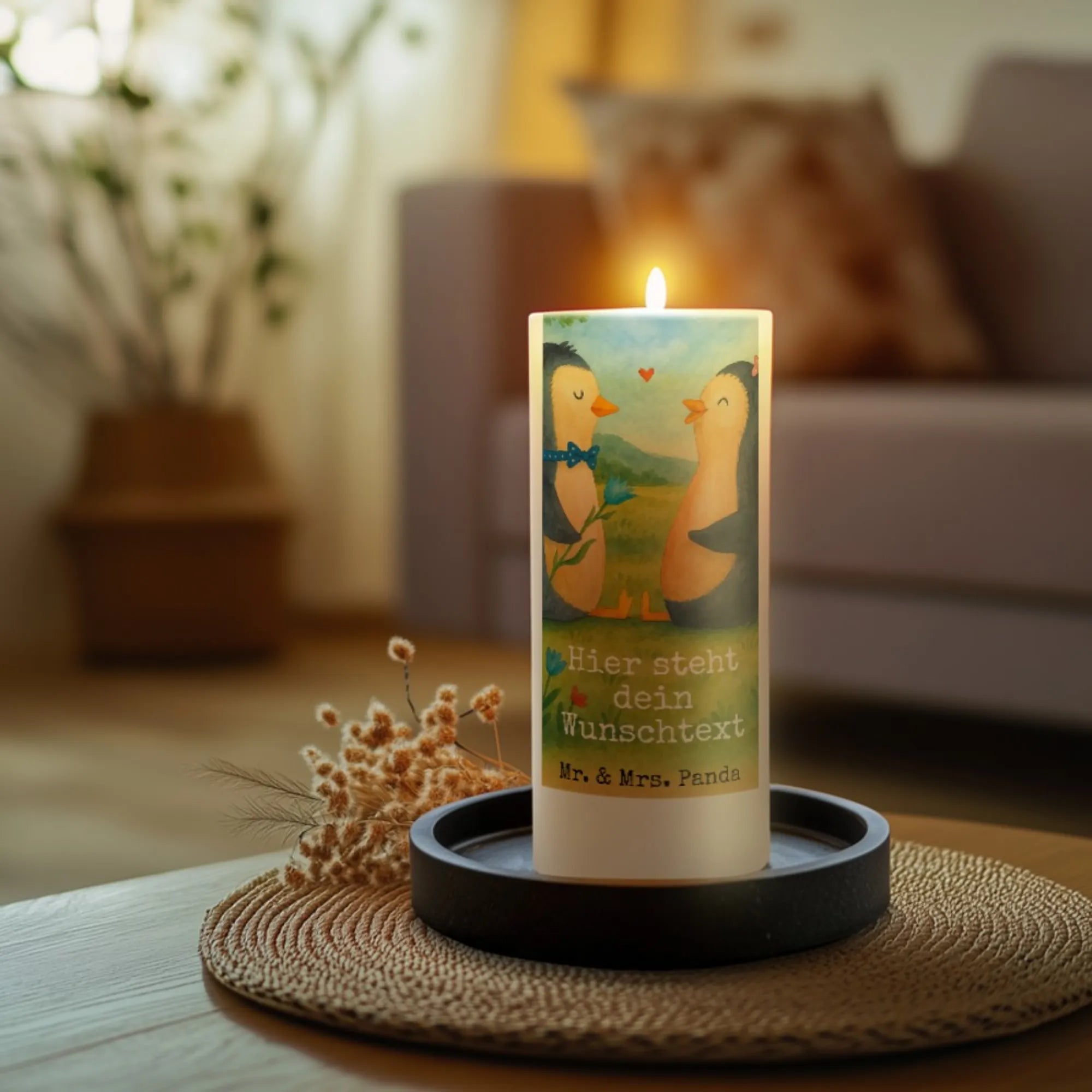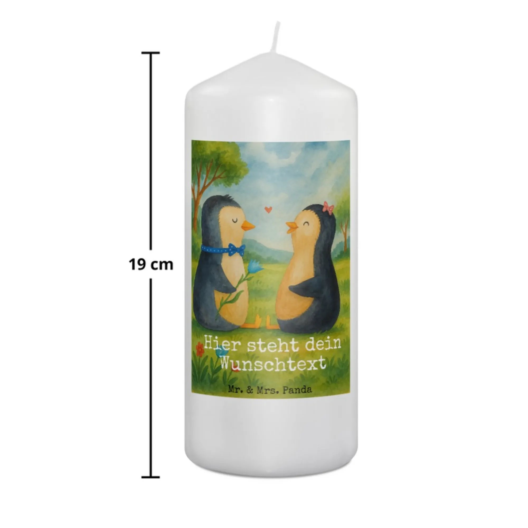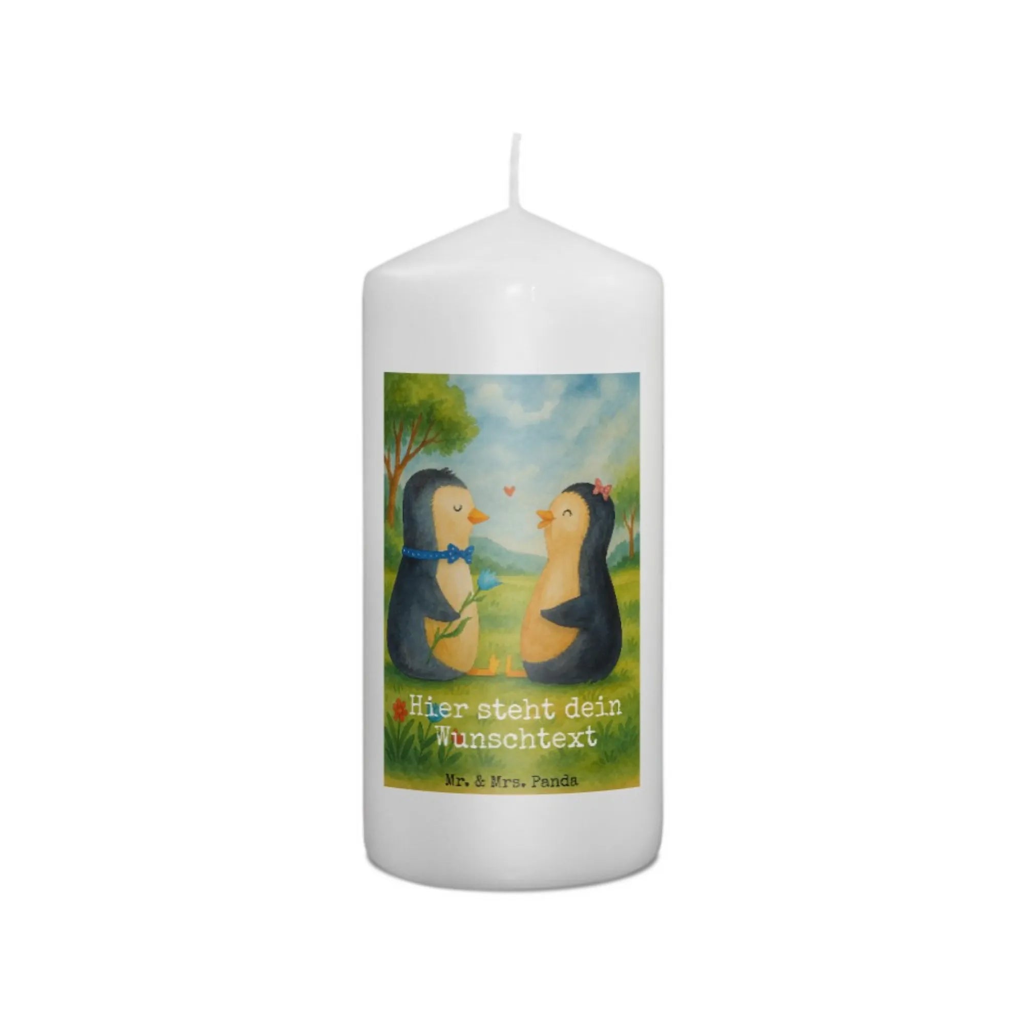 Personalisierte Kerze Pinguin Pärchen Design - 15 x 7 cm