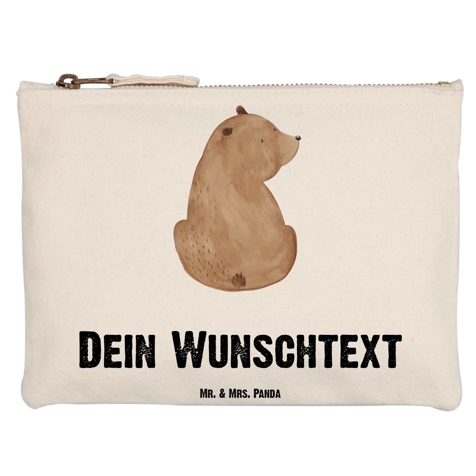Du bist auf der Suche nach einem besonderen Geschenk und liebst die süßen Bären von Mr. & Mrs. Panda? Dann ist die personalisierte Schminktasche mit dem niedlichen Bär Schulterblick das perfekte Geschenk für dich oder deine Liebsten!