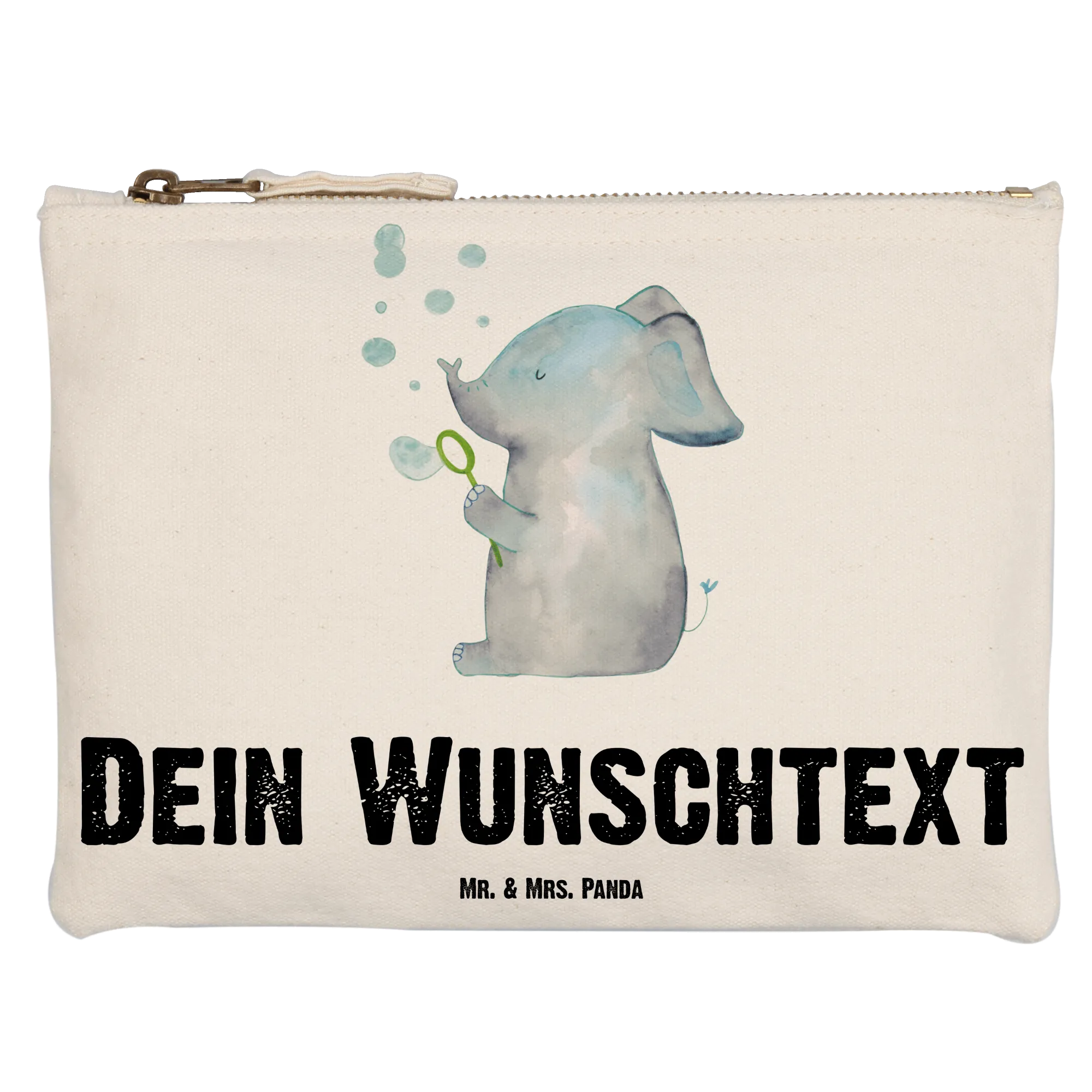 Du suchst das perfekte Geschenk für einen lieben Menschen? Dann haben wir genau das Richtige für dich! Die personalisierte Schminktasche mit dem zauberhaften Motiv "Elefant Seifenblasen" aus der Small World Kollektion von Mr. & Mrs. Panda ist nicht nur funktional, sondern auch ein echter Hingucker. Dieser niedliche Elefant, der fröhliche Seifenblasen in die Luft pustet, bringt garantiert gute Laune und ein Lächeln ins Gesicht.