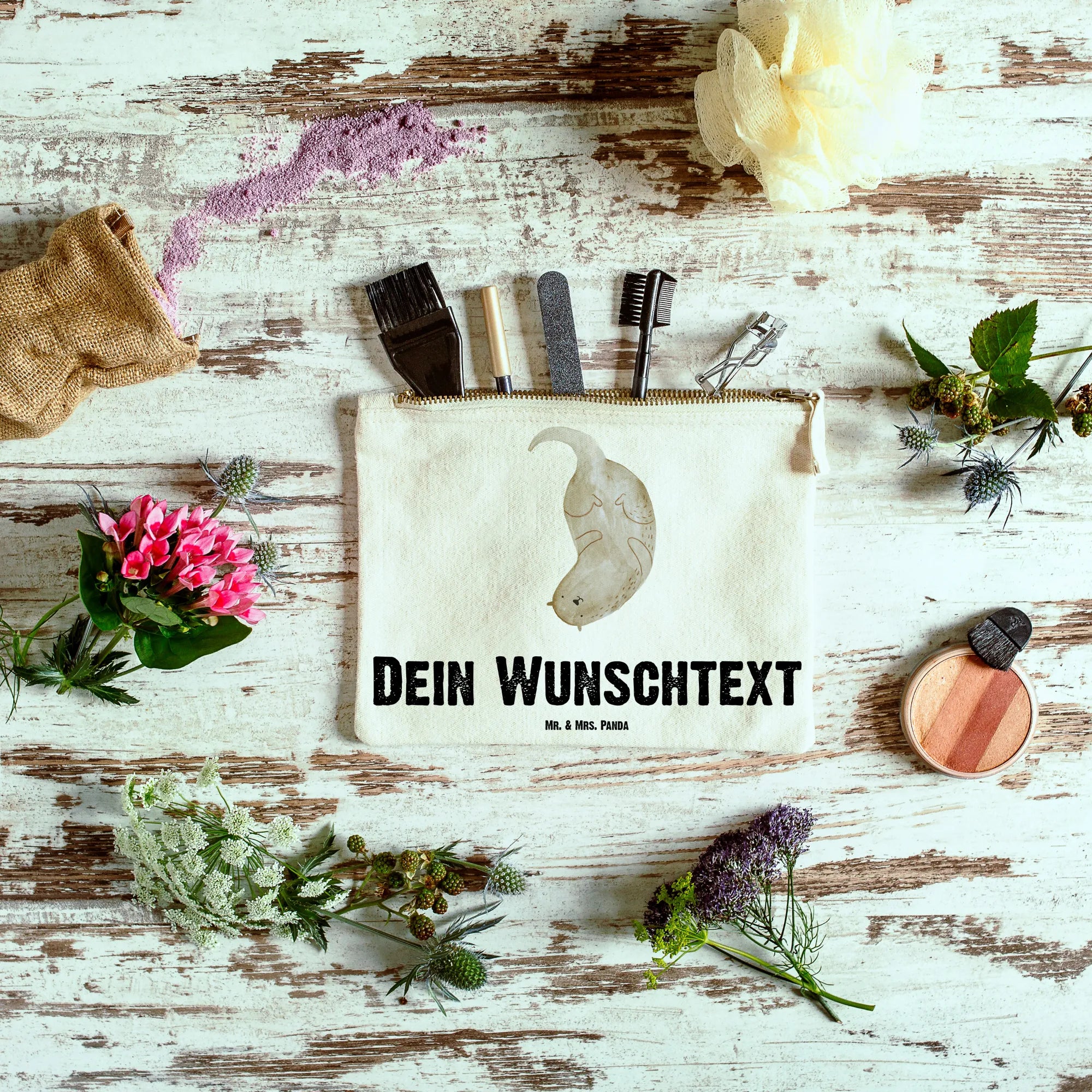 Verschenke Freude, Stil und ein Stück Natur mit der personalisierten Schminktasche - eine perfekte Ergänzung für alle Otter-Fans und Naturliebhaber. Diese Tasche ist nicht nur praktisch, sondern auch ein Ausdruck deiner Persönlichkeit und deines Stils!