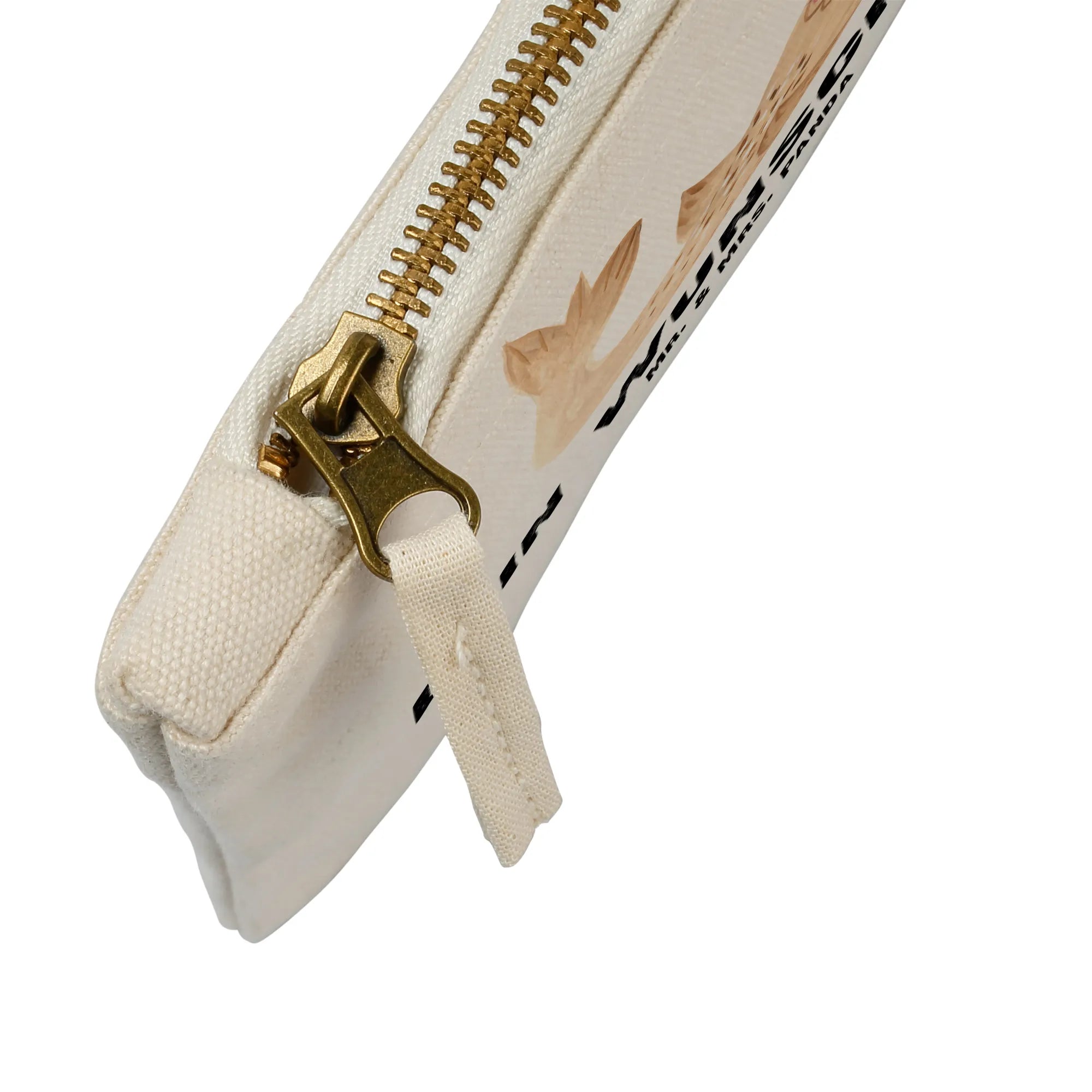 Du kannst sie als Makeup Bag, Stiftemäppchen oder schlichtweg für deine kleinen Schätze verwenden. Das Material besteht aus 100 % weicher Baumwolle, was sie besonders angenehm macht. Die Innennähte sind umsäumt und eingeschlagen, wodurch die Tasche auch nach längerem Gebrauch schön formbeständig bleibt. Und keine Sorge – die Pflege ist kinderleicht, eine lauwarme Handwäsche genügt!