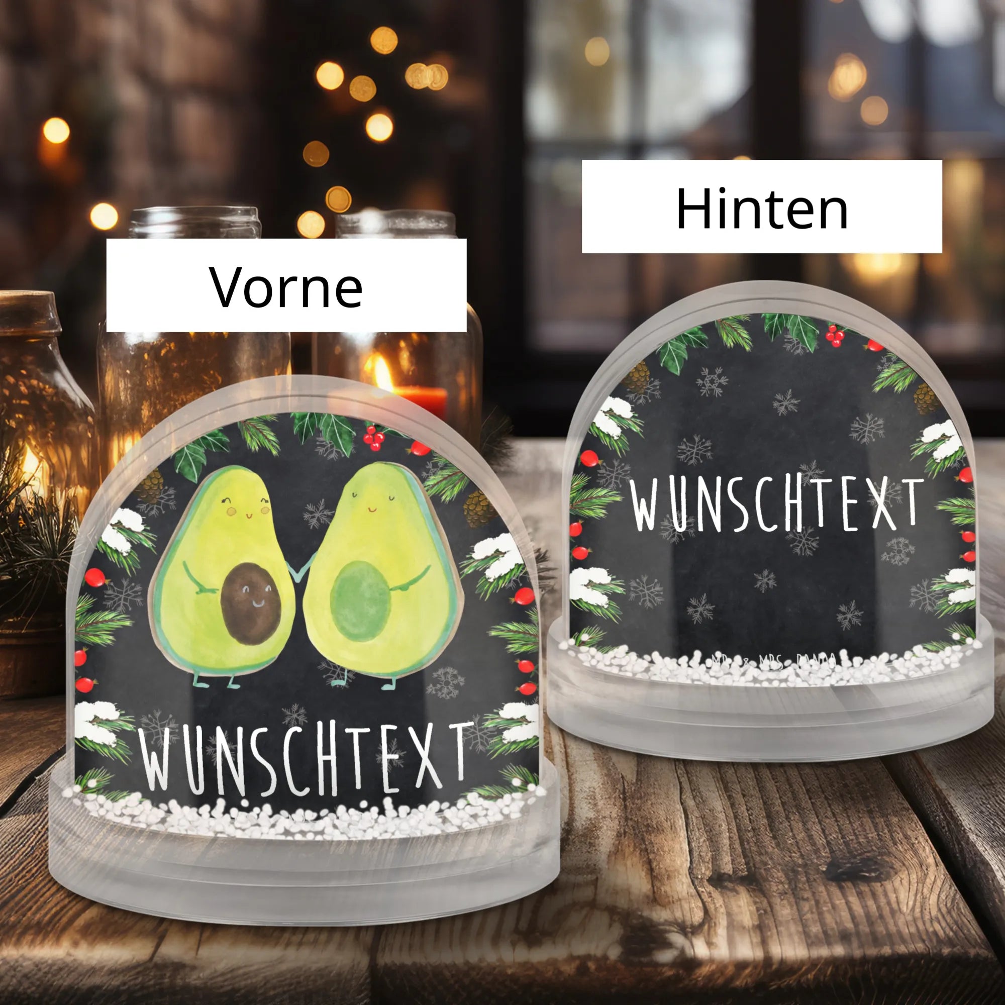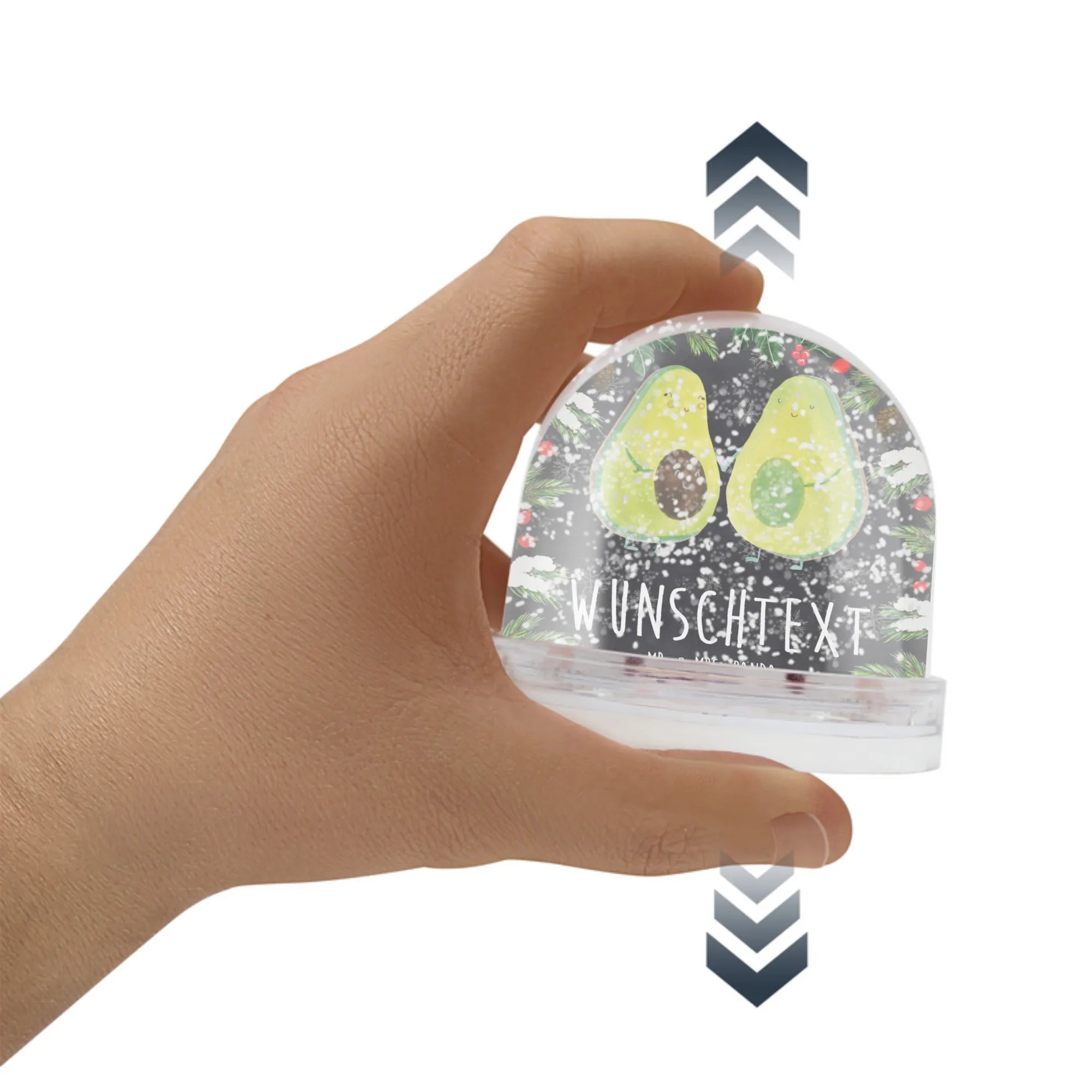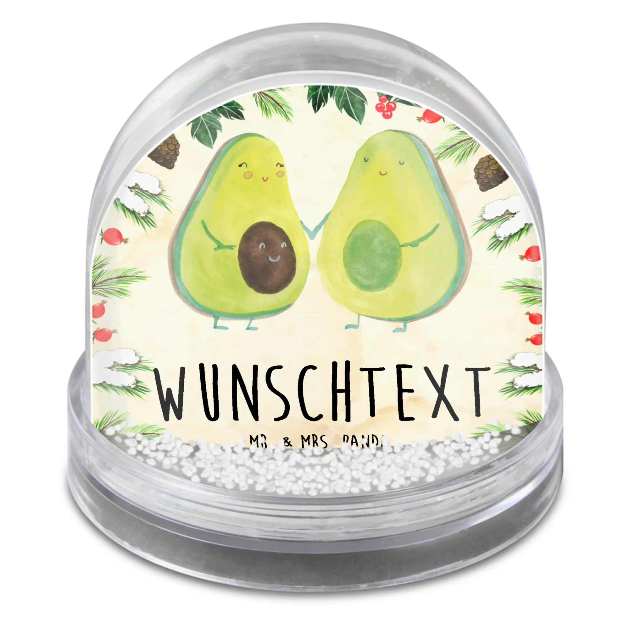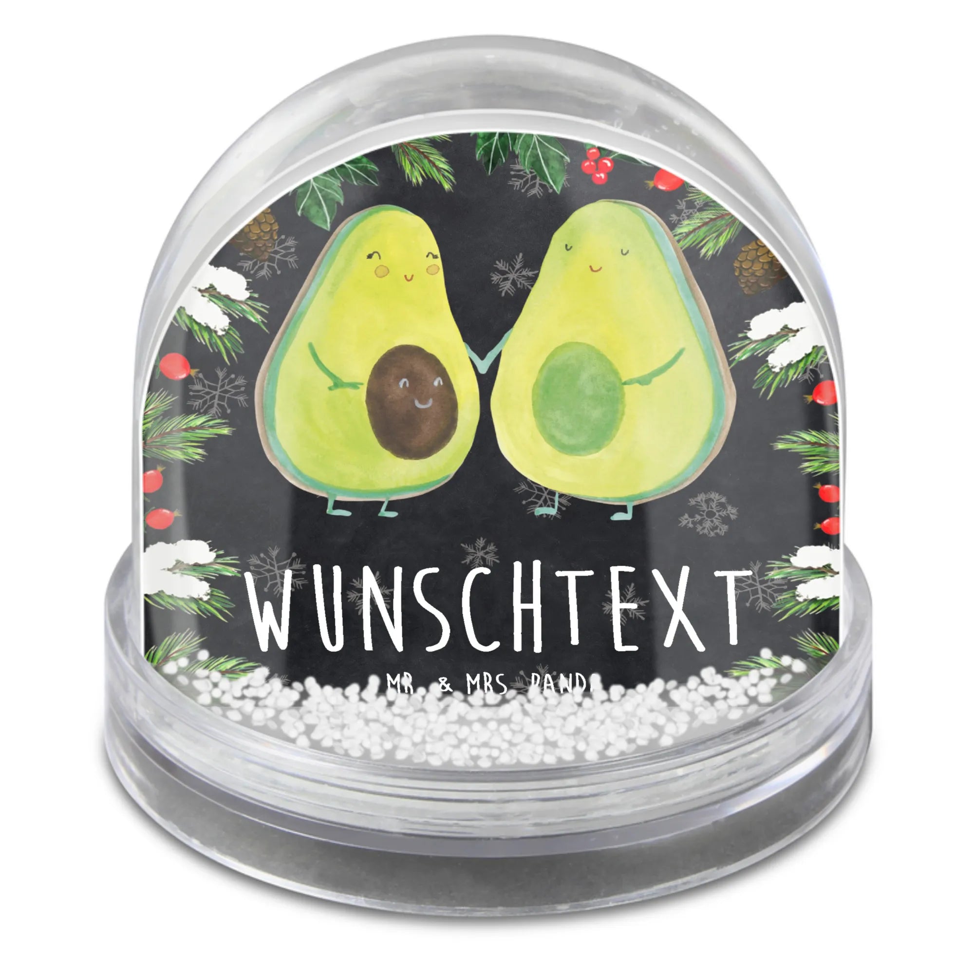 Die personalisierte Schneekugel mit dem süßen Avocado Pärchen von Mr. & Mrs. Panda ist das perfekte Geschenk für alle, die das Leben feiern möchten!
