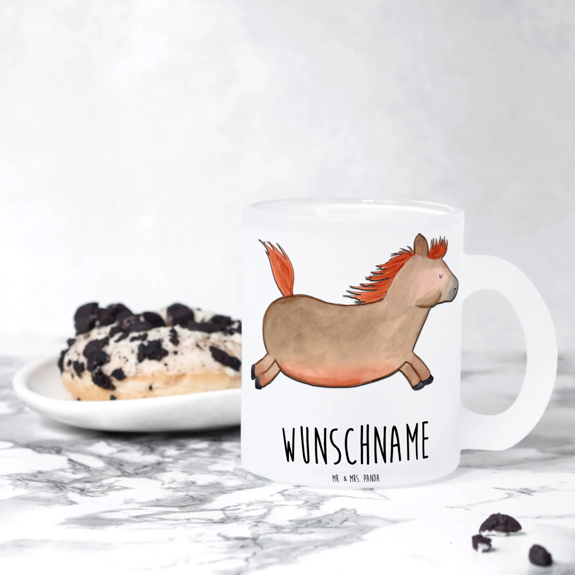 Unsere personalisierte Teetasse wird aus robustem, extra starkem Glas gefertigt und hat eine edle, matte Oberfläche. Mit einem Durchmesser von 80 mm und einer Höhe von 95 mm bietet sie genug Platz für deine Lieblingsgetränke – ob Tee, Kaffee oder Glühwein! Die satinierte Oberfläche sorgt dafür, dass das niedliche Pferdemotiv perfekt zur Geltung kommt, während der kratzfeste und hitzebeständige Aufdruck dafür sorgt, dass du lange Freude daran hast.