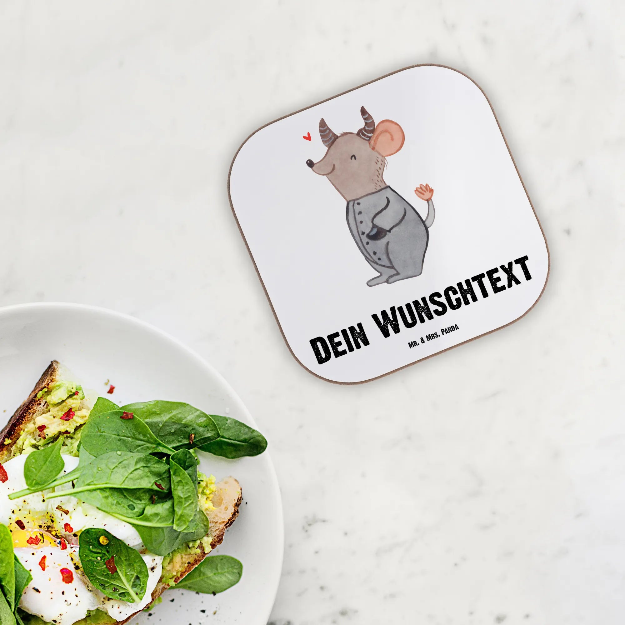 Diese einzigartigen Untersetzer sind mehr als nur ein stylisches Accessoire für deinen Tisch; sie bringen die Magie des Sternzeichens Stier direkt in dein Zuhause. Mit einem liebevoll gestalteten Design, das eine niedliche, anthropomorphe Maus zeigt, die fröhlich auf zwei Beinen steht und mit geschwungenen Hörnern strahlt, wird jeder Schluck aus deinem Glas zu einem besonders unvergesslichen Erlebnis.
