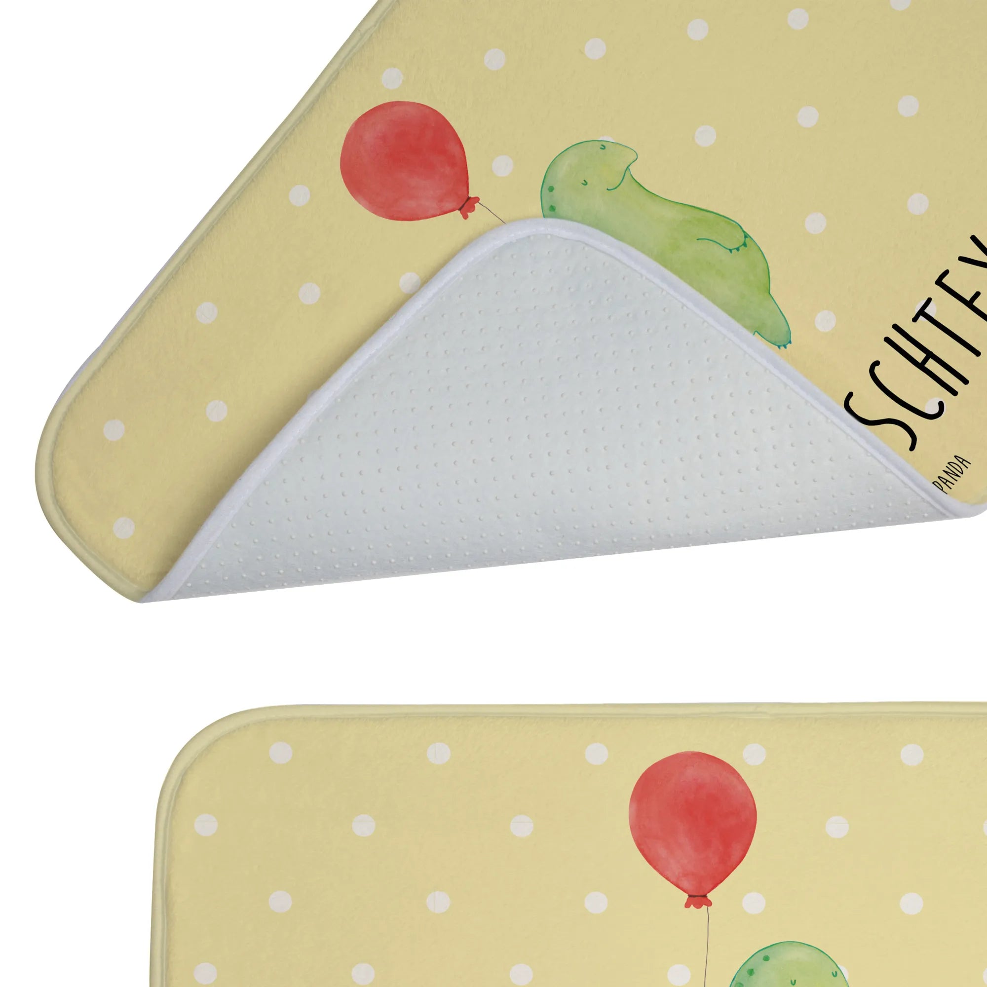 Entdecke unseren personalisierten Badvorleger mit dem süßen Schildkröten-Motiv "Luftballon" aus der bezaubernden Schildkröten-Kollektion von Mr. & Mrs. Panda! Dieser wunderschöne Badvorleger ist nicht nur ein praktisches Accessoire für dein Badezimmer, sondern auch ein Herzstück, das jedem Raum eine persönliche Note verleiht. Mit der zuckersüßen Schildkröte, die an einem bunten Luftballon schwebt, zauberst du jedem ein Lächeln ins Gesicht und bringst eine Portion gute Laune ins Bad.