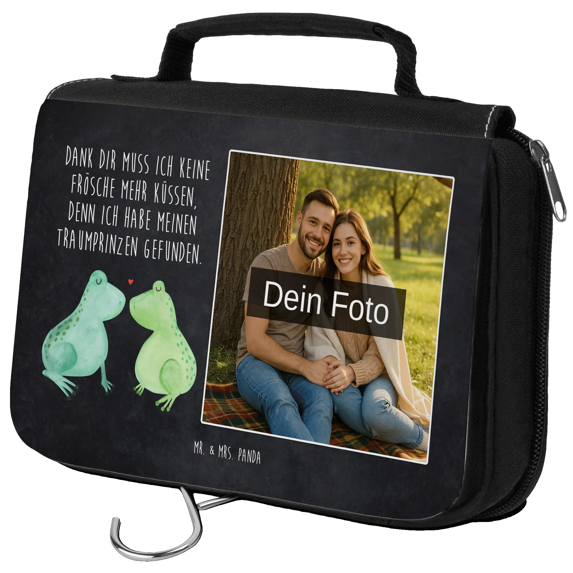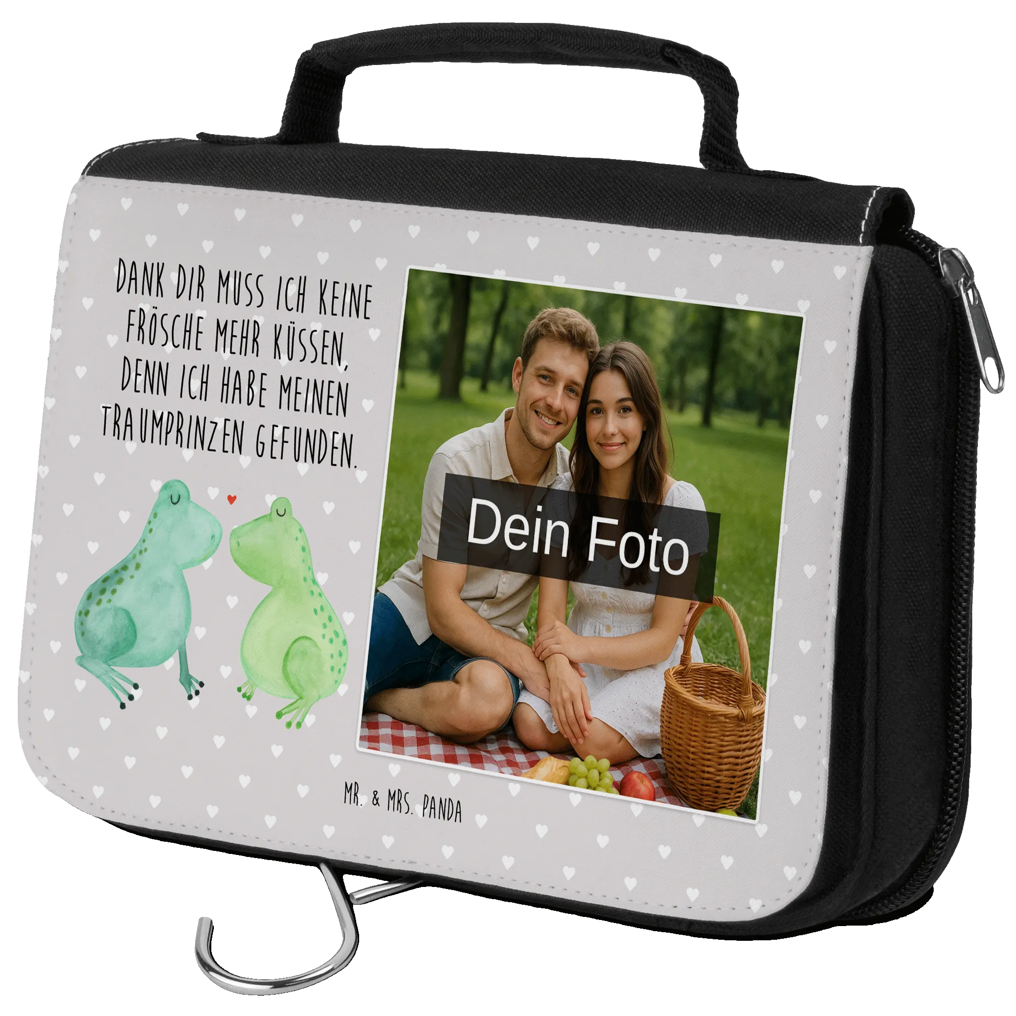 Personalisierter Foto Kulturbeutel Frosch Liebe - Grau Pastell