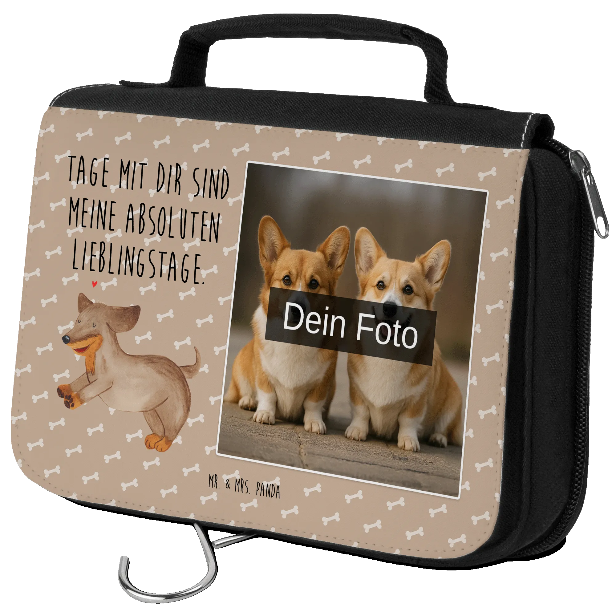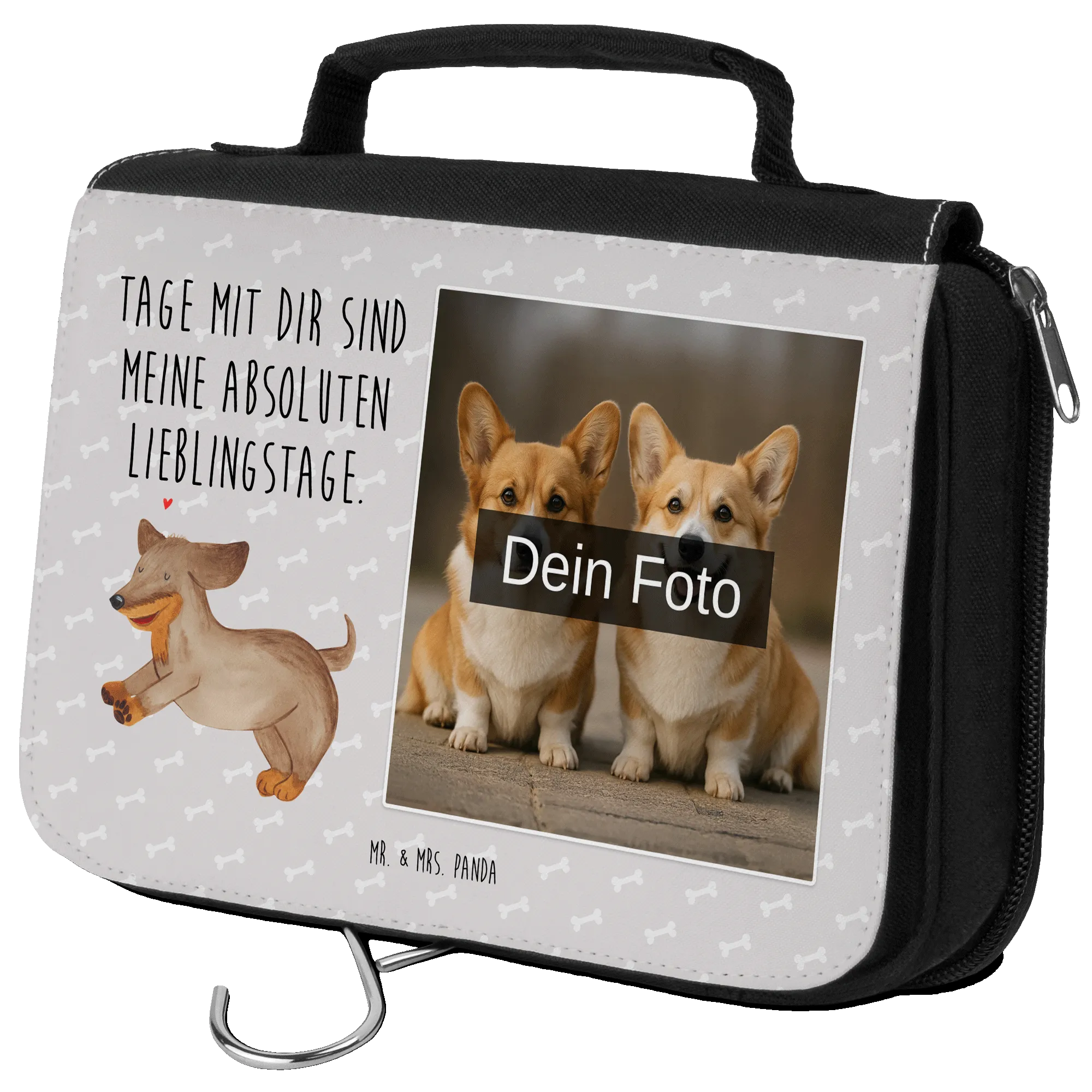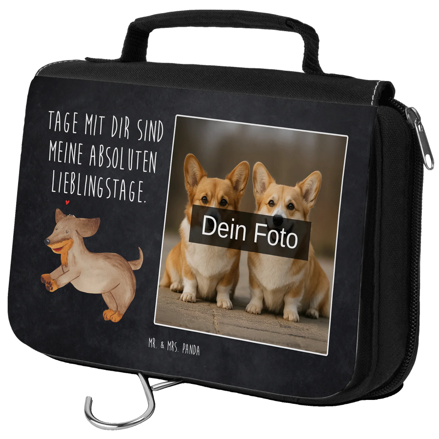 Personalisierter Foto Kulturbeutel Hund Dackel - Kreidetafel