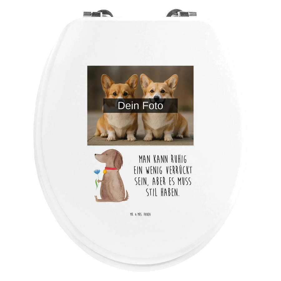 Personalisierter Foto WC Sitz Motiv Hund Blume - Hartfaser Holzkern Weiß