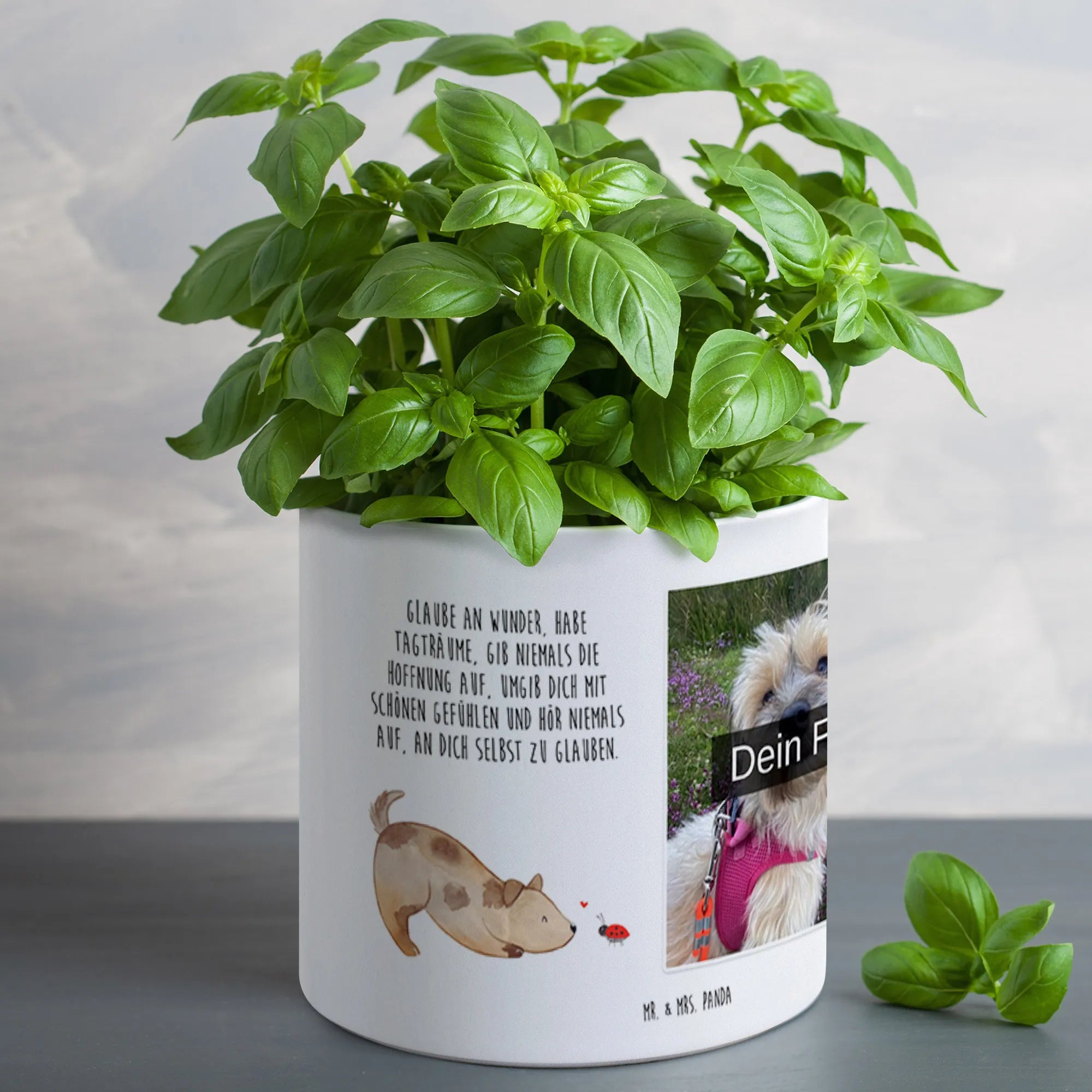 Personalisierter Foto XL Blumentopf Hund Marienkäfer
