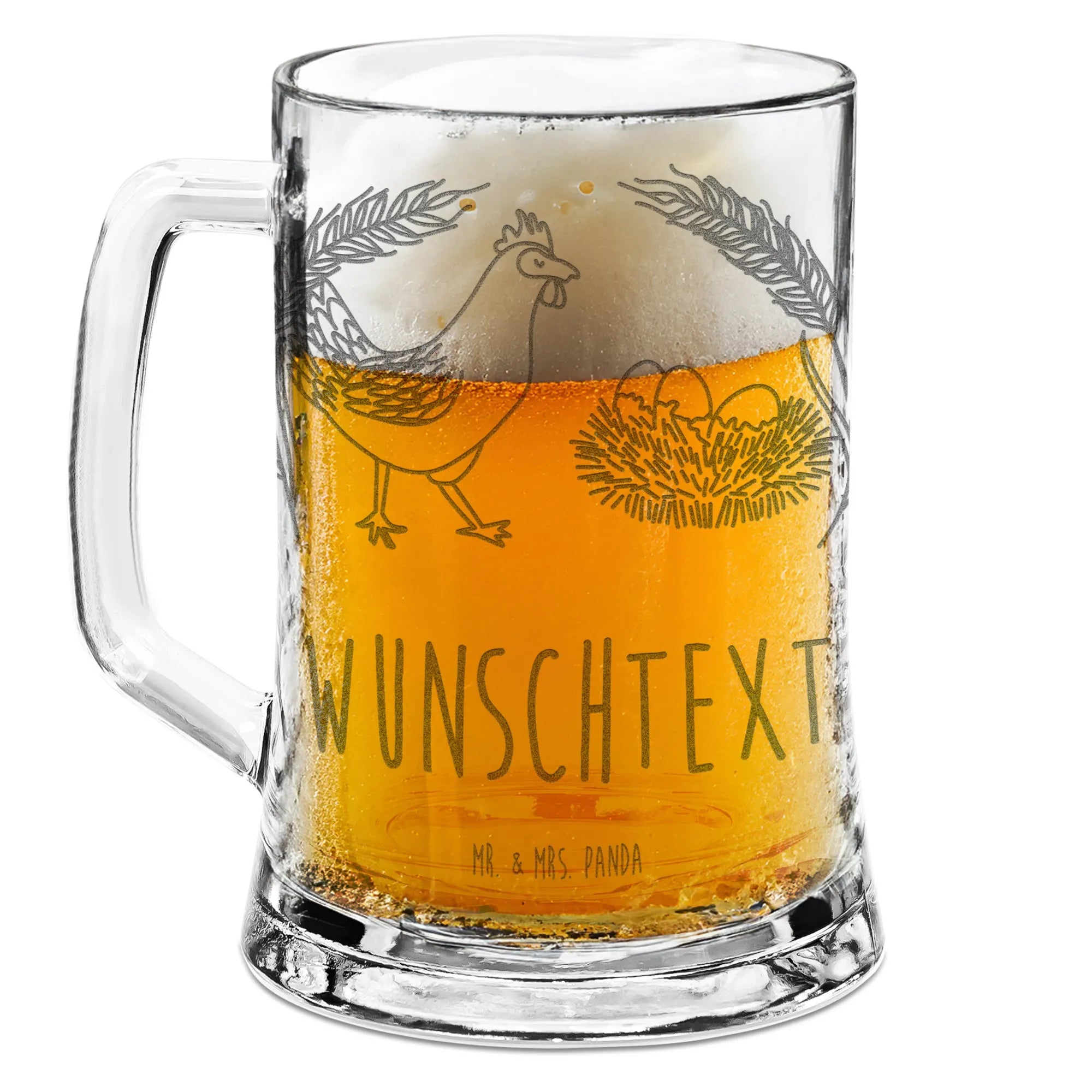 Der personalisierte Gravur Bierkrug mit dem süßen Motiv "Huhn stolz" aus der wunderbaren Bauernhof-Kollektion von Mr. & Mrs. Panda ist das perfekte Geschenk für all jene, die das Landleben und die Freude am Biertrinken lieben. 🍺