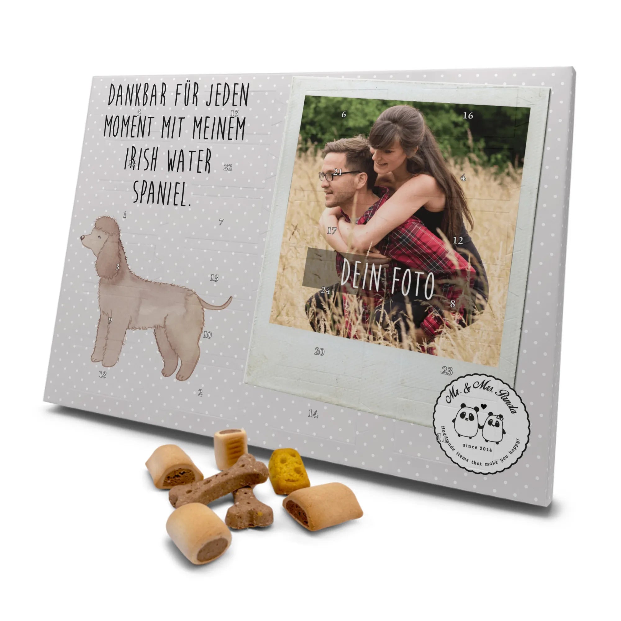 Der personalisierte Hunde Foto Adventskalender mit dem niedlichen Irish Water Spaniel Motif ist das perfekte Geschenk für jeden Hundeliebhaber! Dieser Kalender verwandelt die Wartezeit auf Weihnachten in ein tierisches Fest der Vorfreude, während dein pelziger Freund jeden Tag mit einem leckeren Hundekeks überrascht wird.