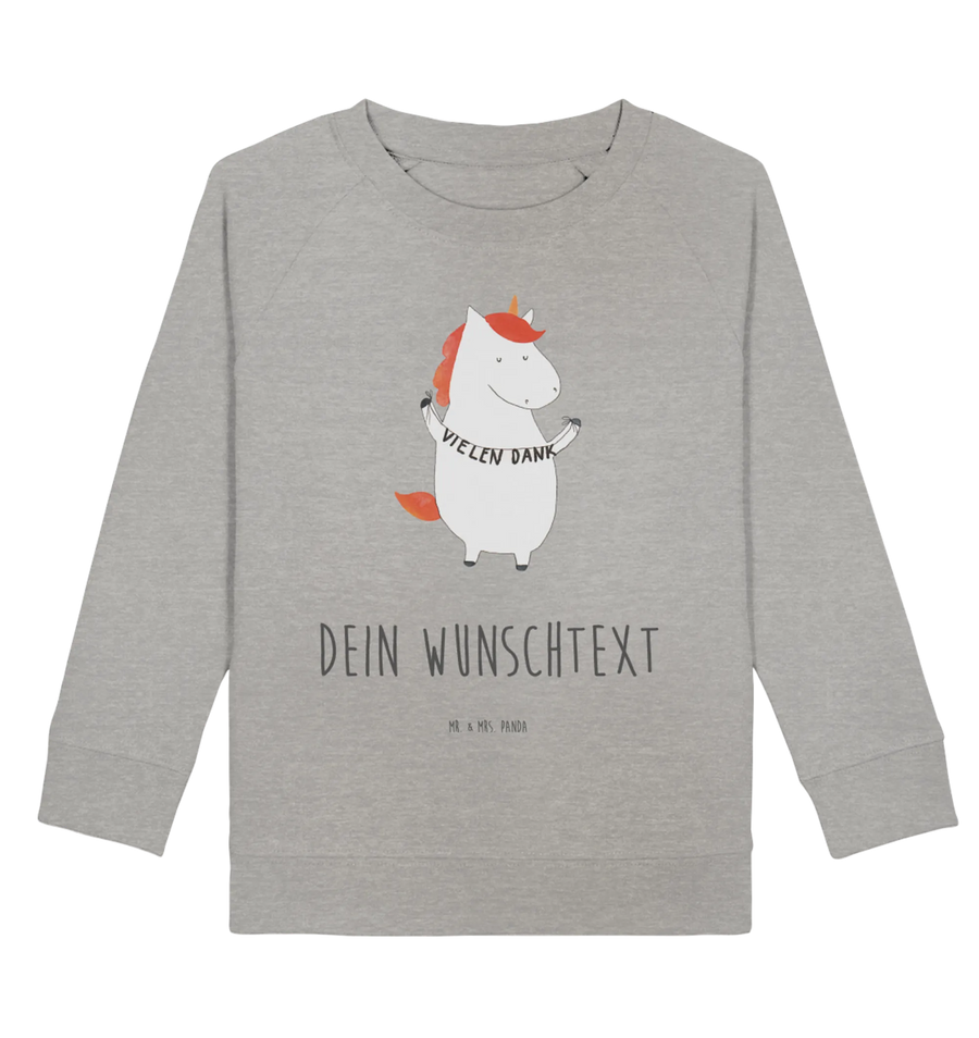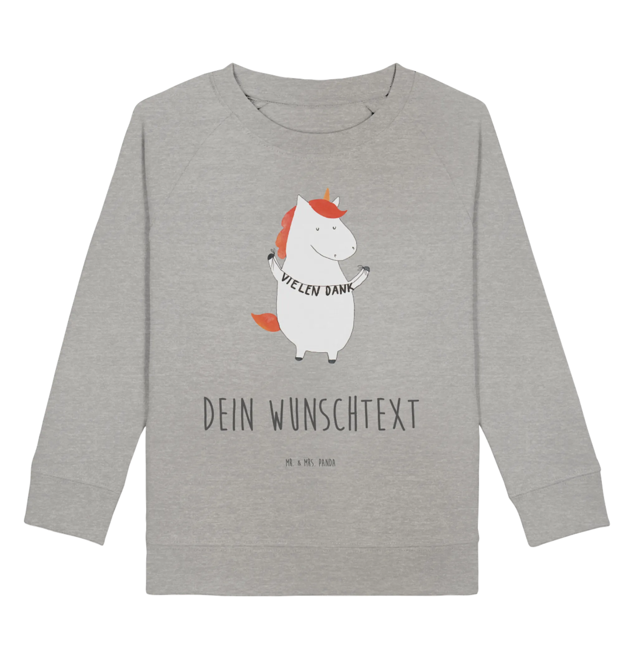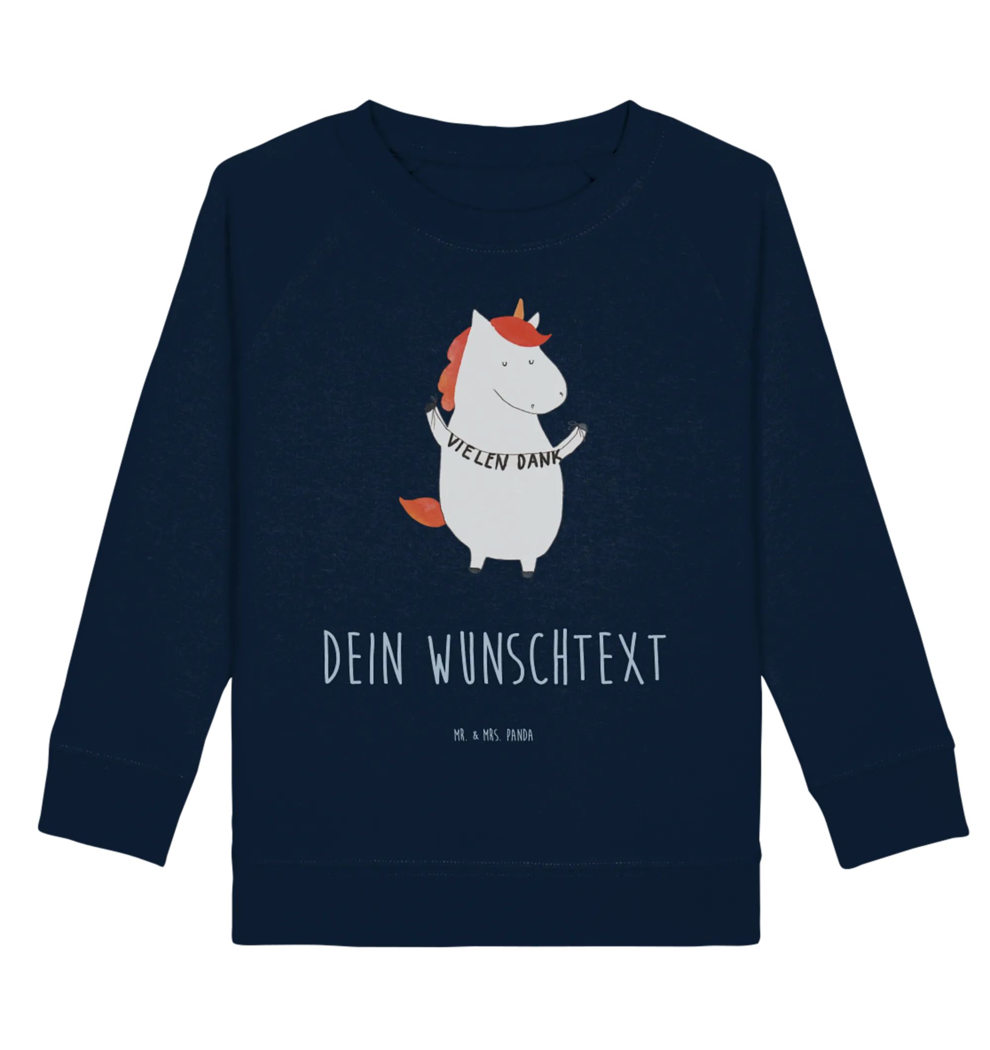 Der personalisierte Kinder Pullover 'Einhorn Vielen Dank' aus der zauberhaften Einhorn-Kollektion von Mr. & Mrs. Panda ist das perfekte Geschenk für kleine Einhorn-Fans und alle, die ein herzliches 'Danke' sagen möchten!