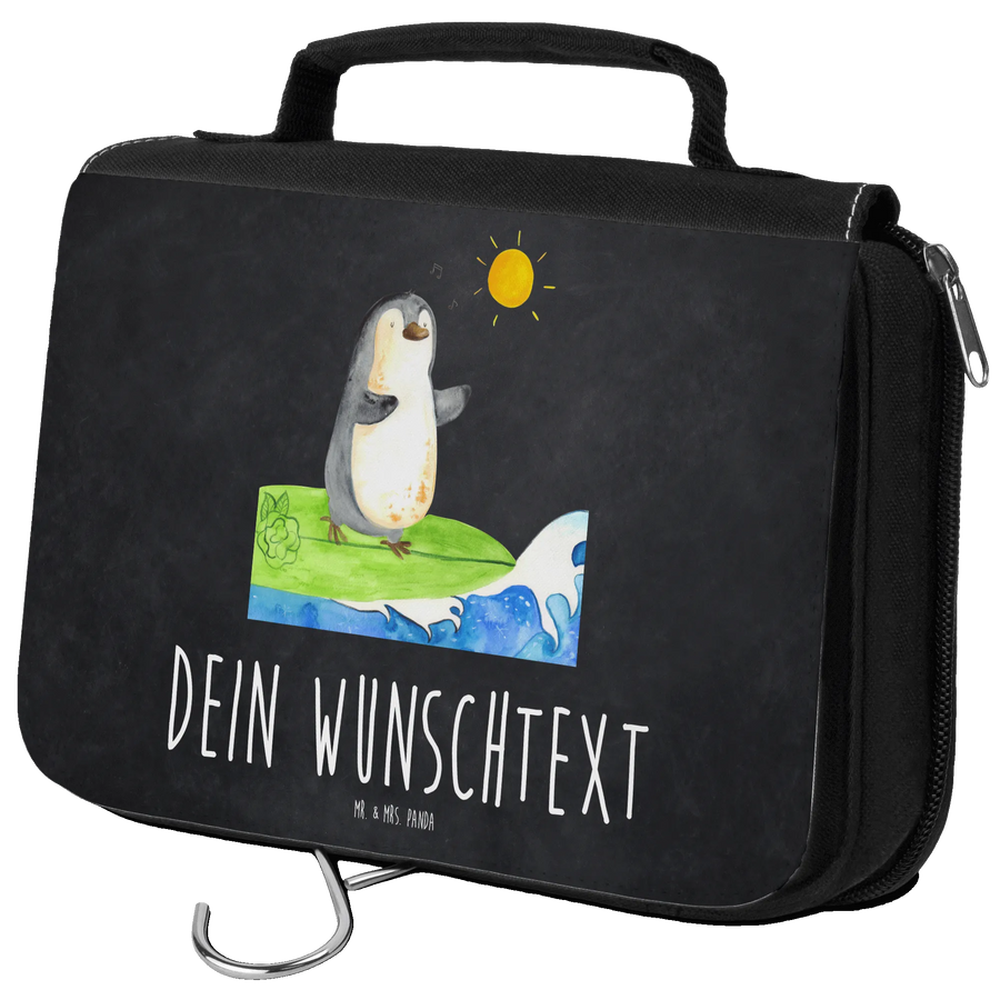 Personalisierter Kulturbeutel Pinguin Surfer - Kreidetafel