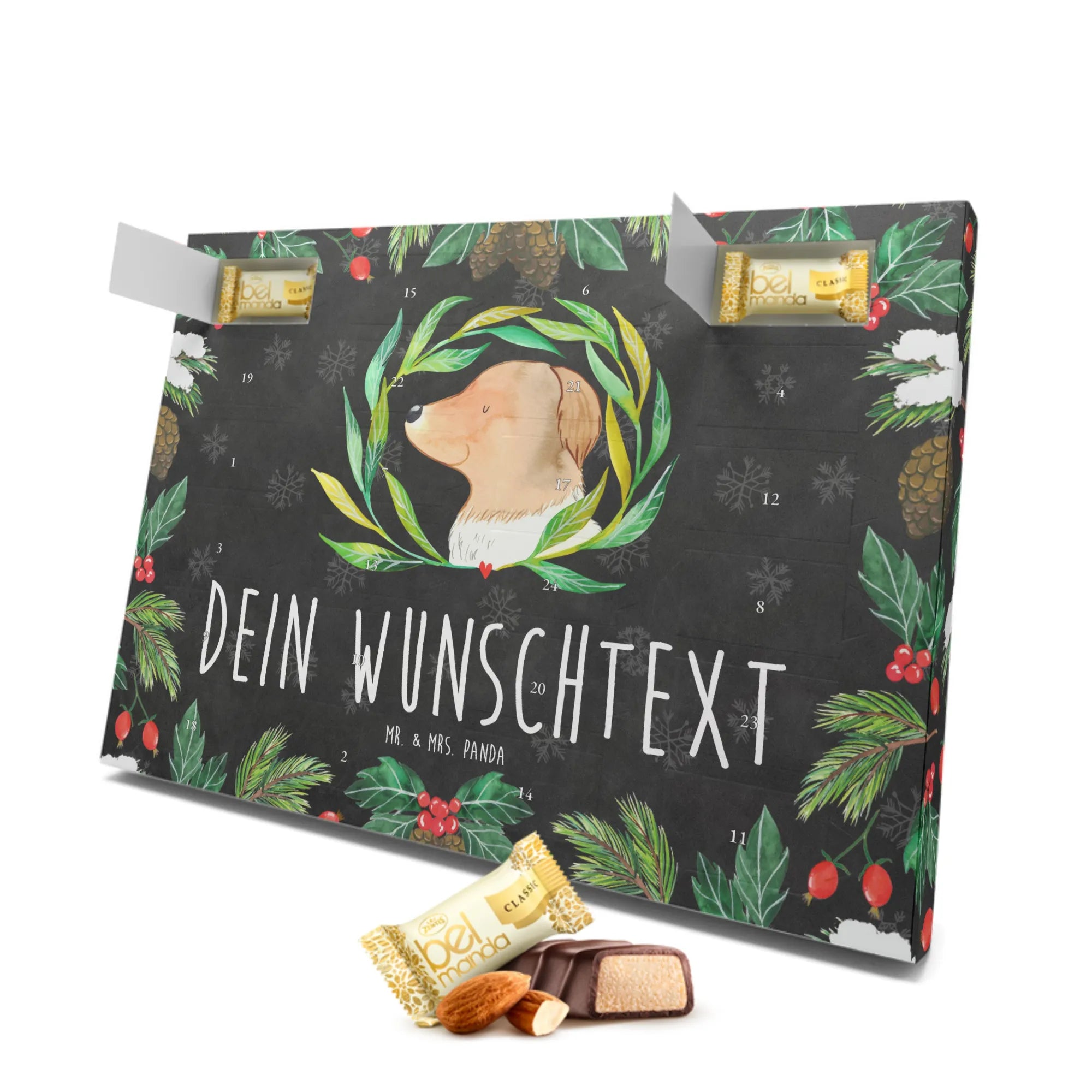 Personalisierter Marzipan Adventskalender Hund Blumen – Mr. & Mrs. Panda