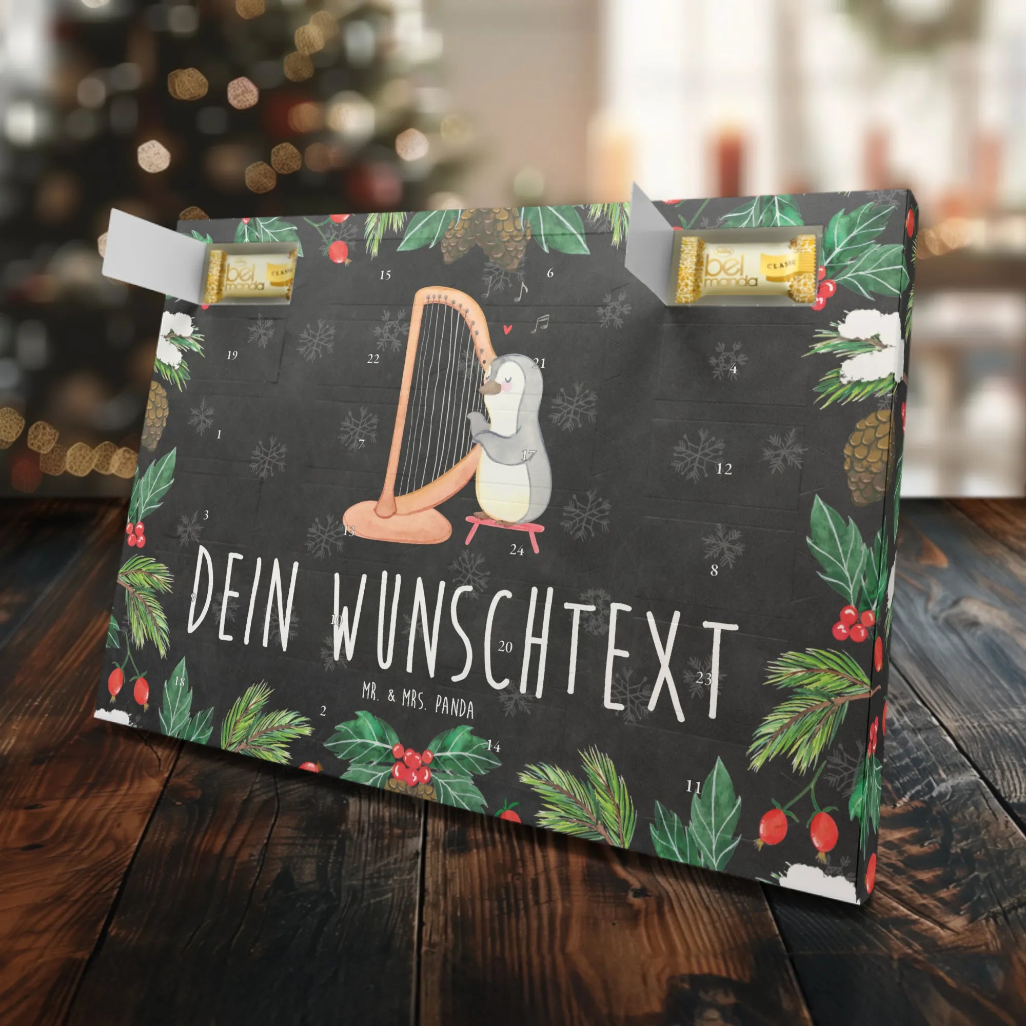 Personalisierter Marzipan Adventskalender Pinguin Harfe - Schwarz