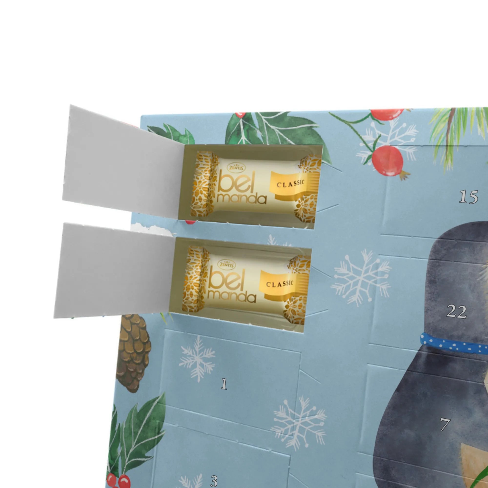 Der Adventskalender ist befüllt mit 24 exquisiten Edelmarzipan Pralinés, die jeden Tag im Advent zu einem kleinen Fest machen. Hergestellt aus hochwertigen Zutaten, ist dieser Kalender ein wahrer Genuss für die Sinne. Die brillante Druckqualität und seidenmatte Oberflächenveredelung sorgen dafür, dass das Geschenk nicht nur köstlich schmeckt, sondern auch optisch ein echtes Highlight ist.