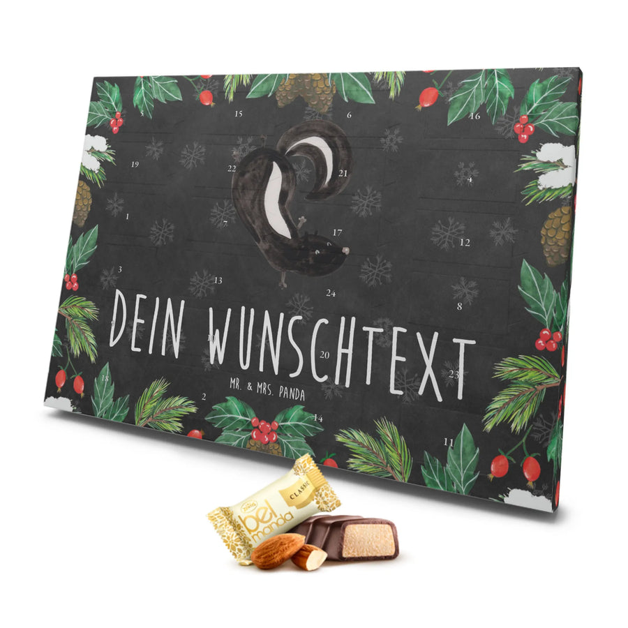 Der personalisierte Marzipan Adventskalender mit dem niedlichen Stinktier Handstand Motiv aus der Stinktier-Kollektion von Mr. & Mrs. Panda ist das perfekte Geschenk für alle, die etwas Besonderes zur Adventszeit verschenken möchten.
