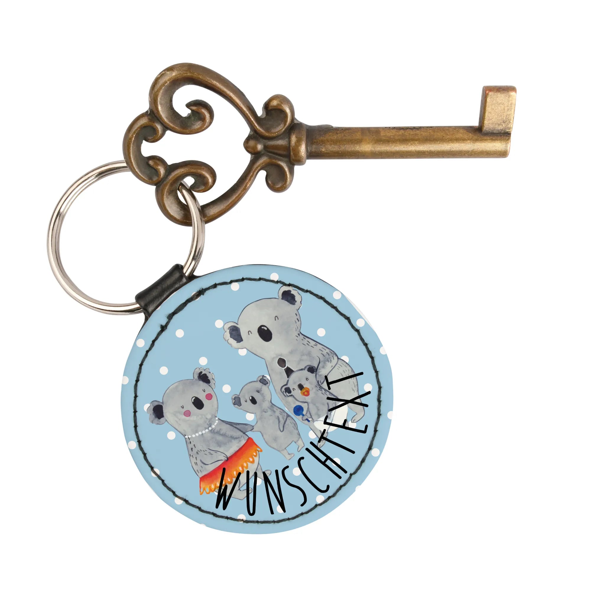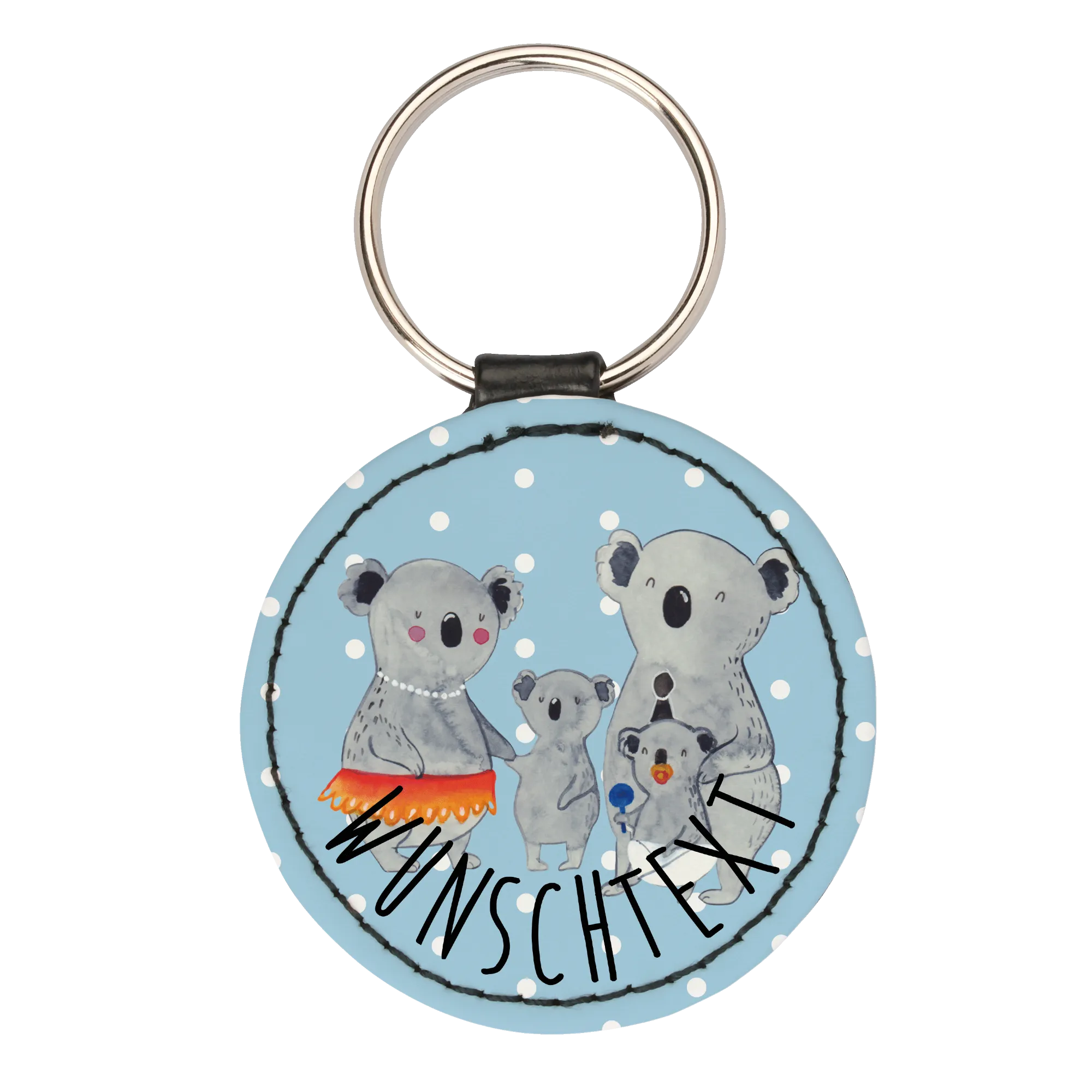 Personalisierter Schlüsselanhänger Koala Familie - Blau Pastell