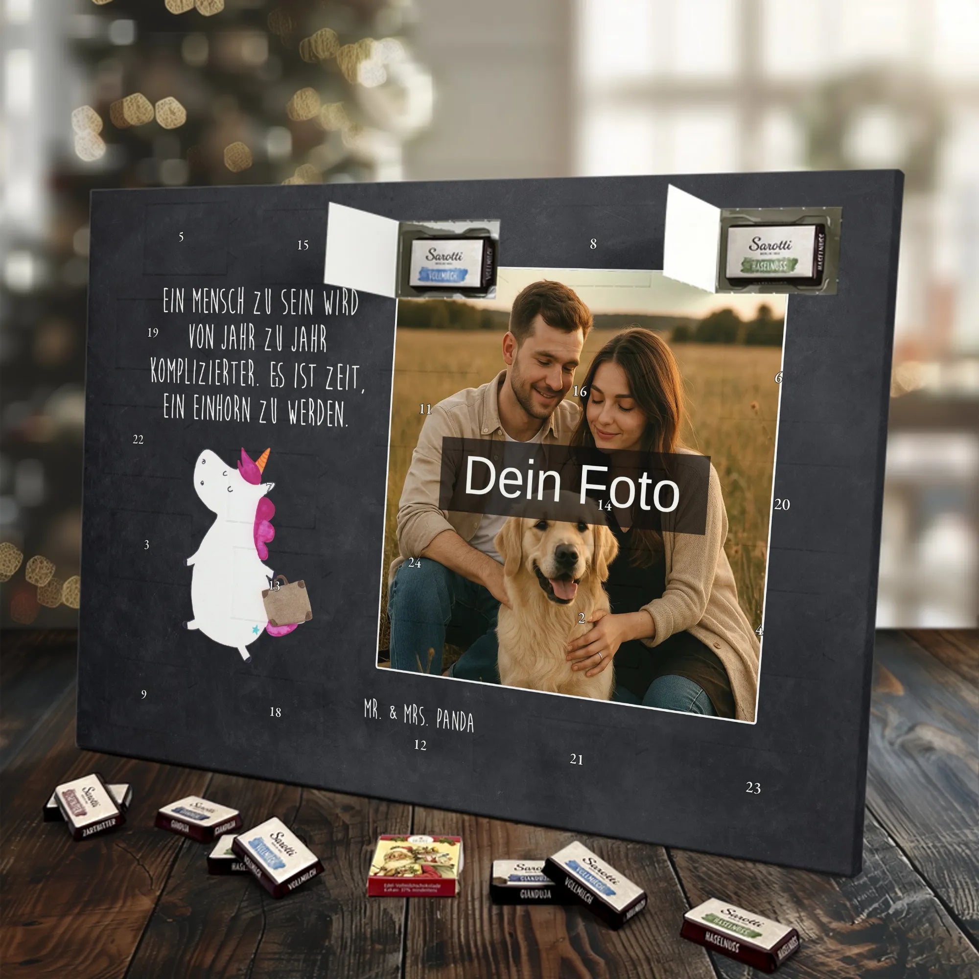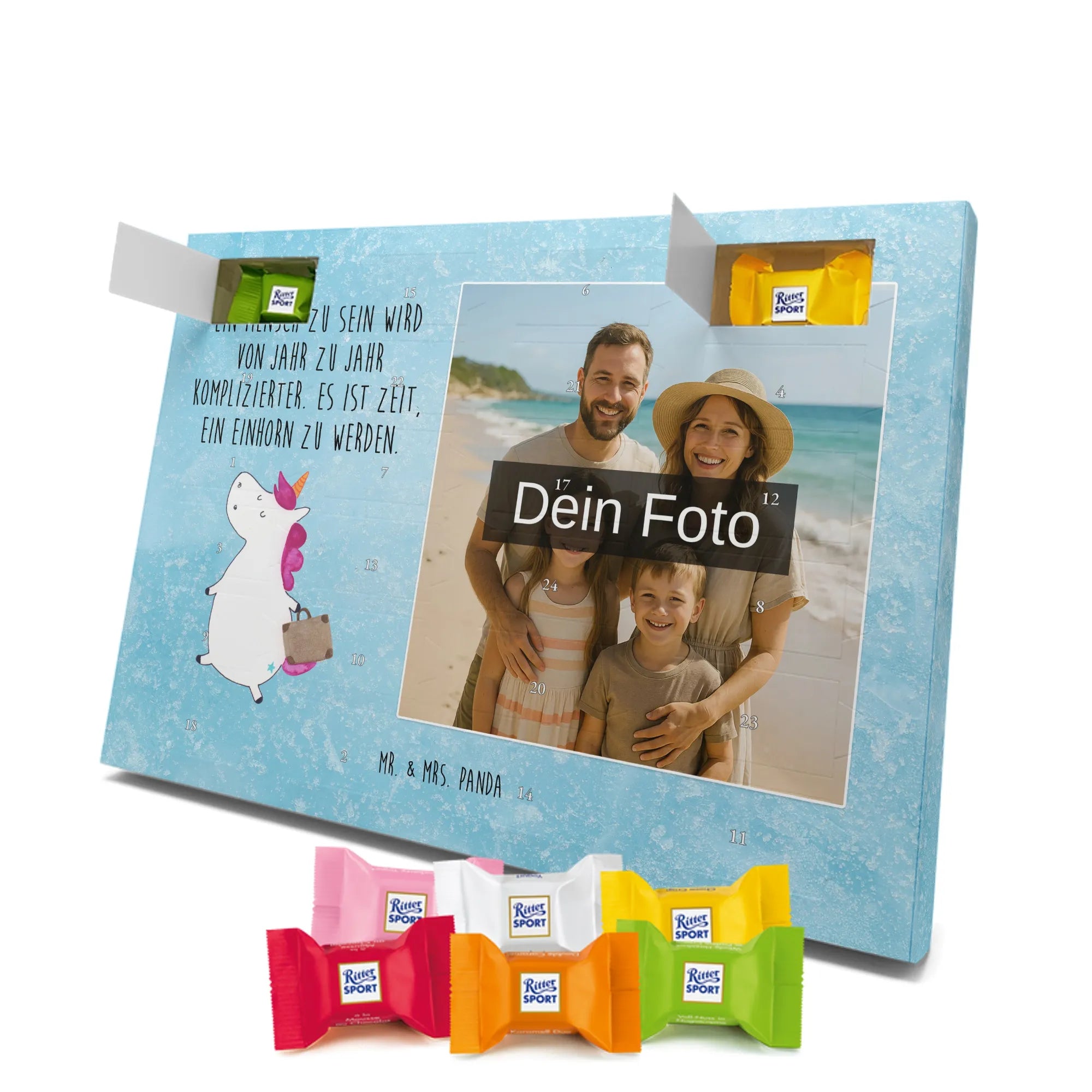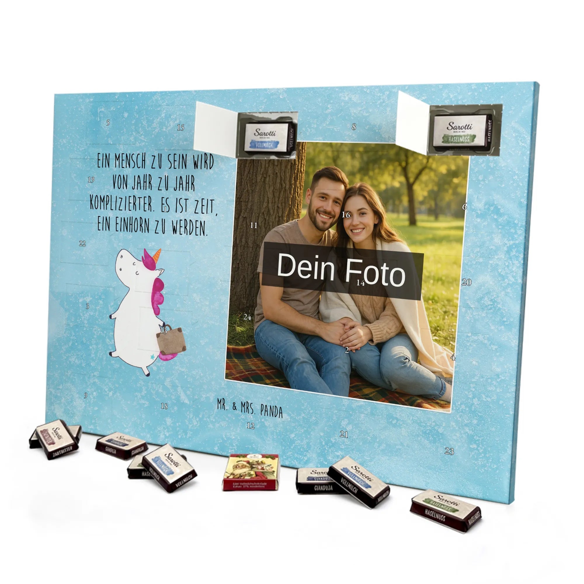 Personalisierter Schoko Foto Adventskalender Einhorn Koffer – Mr. & Mrs. Panda