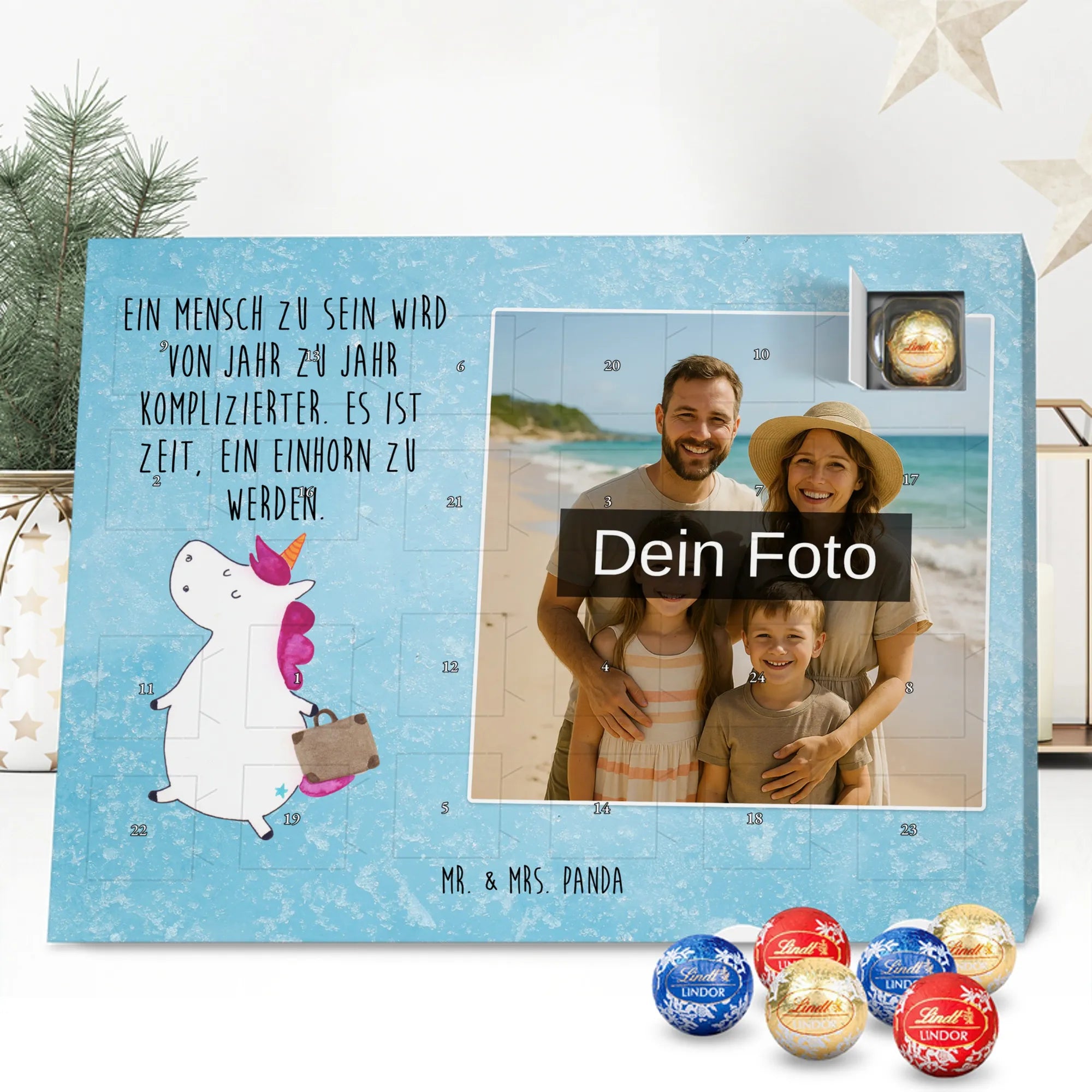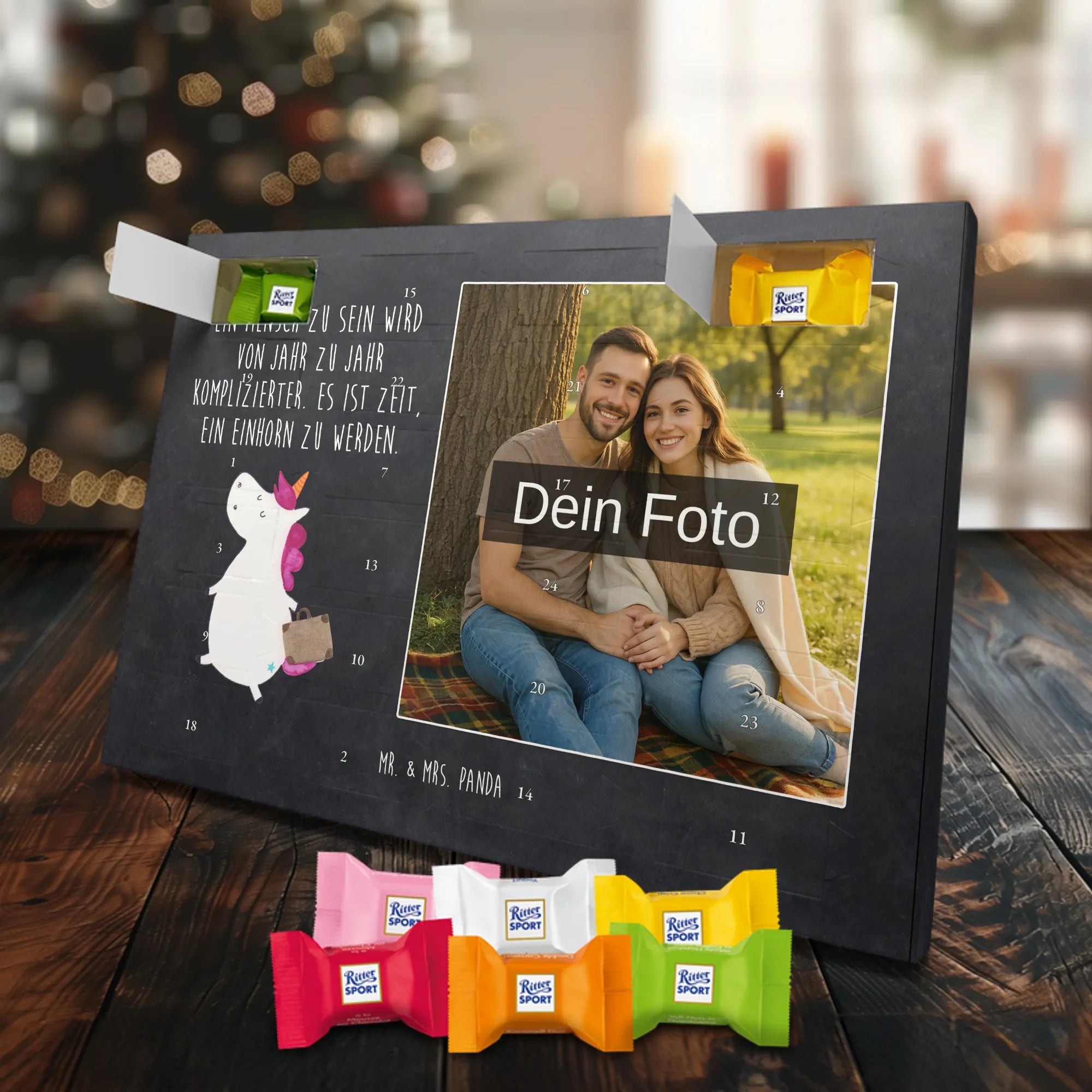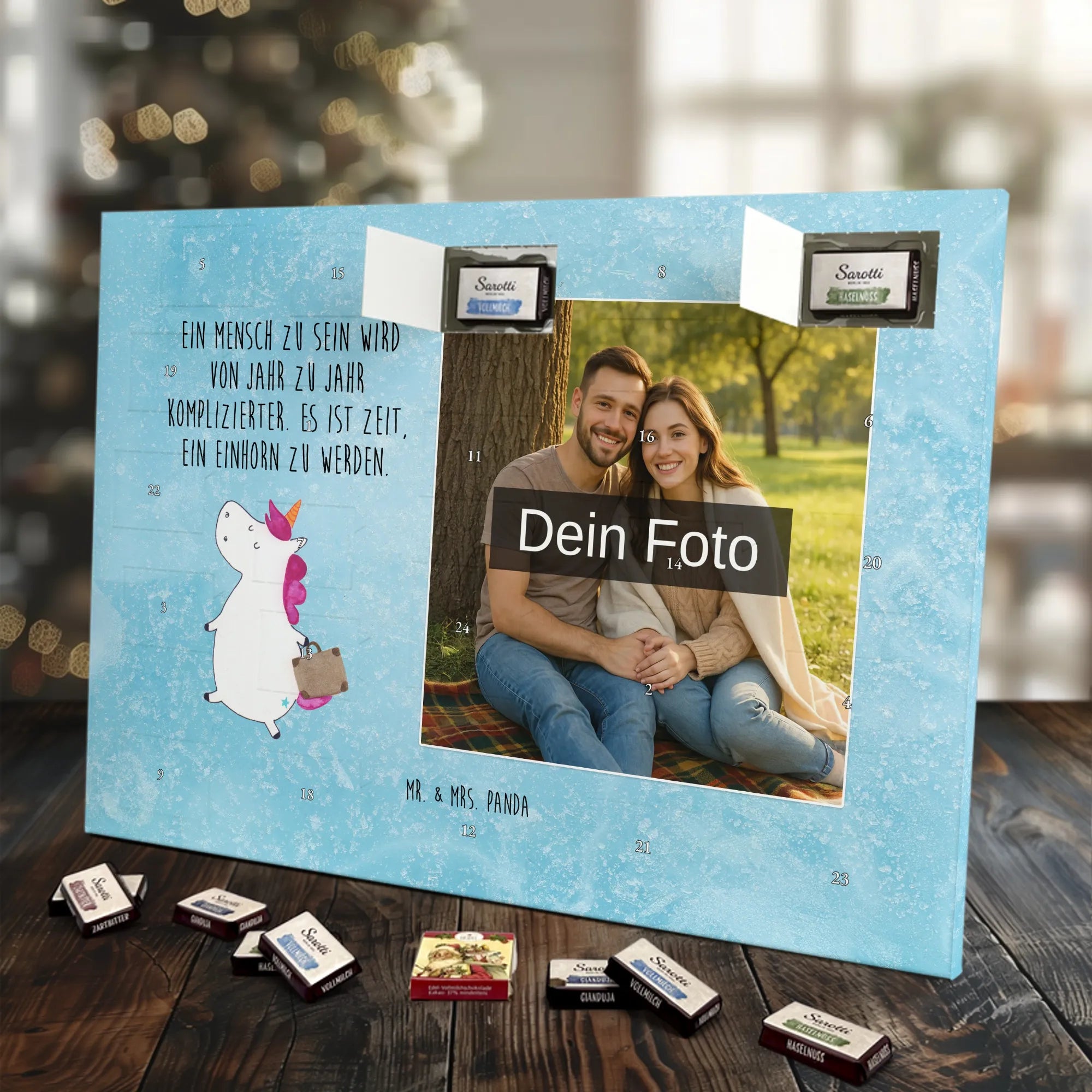 Personalisierter Schoko Foto Adventskalender Einhorn Koffer – Mr. & Mrs. Panda