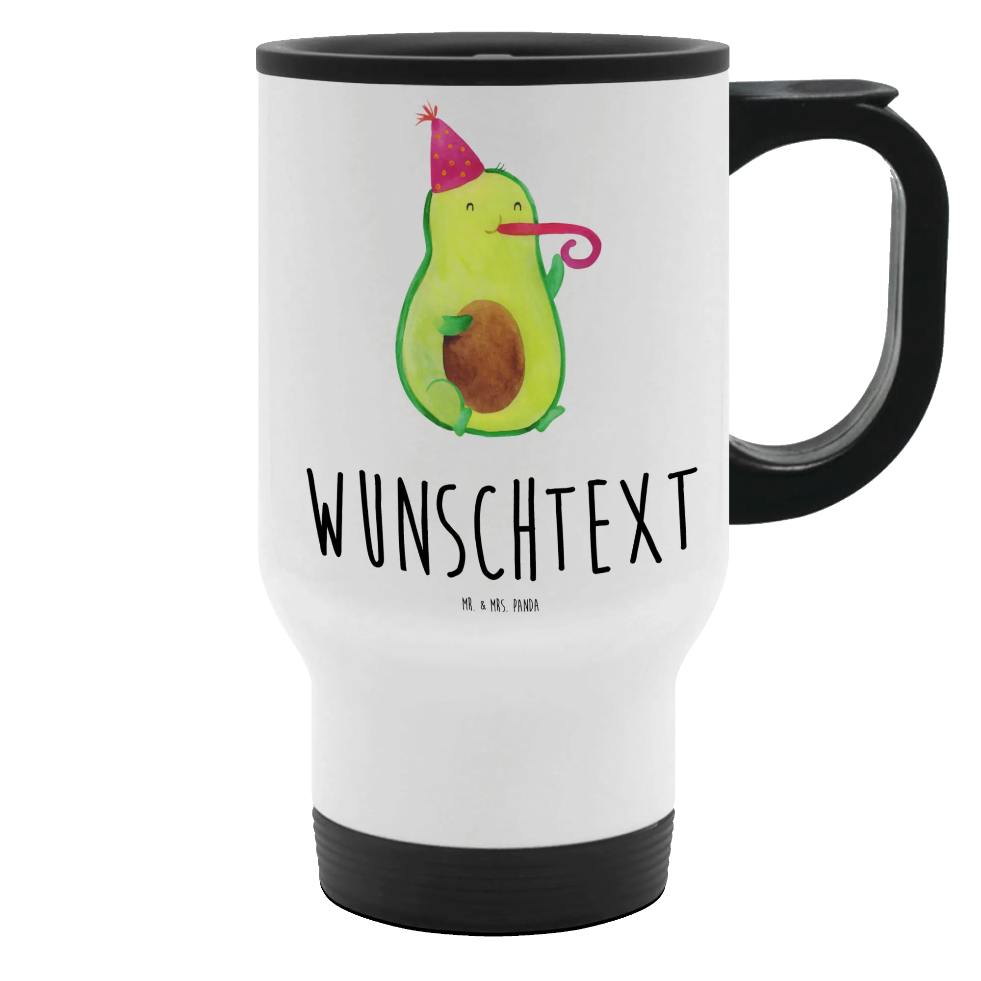 Der personalisierte Thermobecher mit dem süßen Avocado-Motiv "Partyhupe" von Mr. & Mrs. Panda ist das perfekte Geschenk für alle, die das Leben mit einem Lächeln genießen möchten. Ob für den nächsten Geburtstag, eine gemütliche Feierlichkeit oder einfach als liebevolle Geste für einen Freund – dieser Thermobecher bringt gute Laune ins Spiel! Mit einem auffälligen Design, das eine fröhliche Avocado zeigt, die einen Partyhut trägt und in eine Partypfeife pustet, zieht er alle Blicke auf sich.
