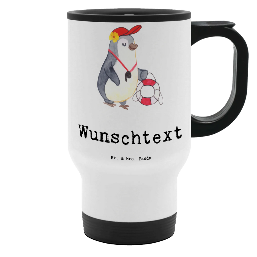 Bei jeder Tasse Kaffee wird die Trägerin an ihre Leidenschaft erinnert – das Schwimmen, das Unterrichten und die Entwicklung junger Talente im Wasser. Überrasche deinen Lieblings-Bademeister oder deine Bademeisterin mit diesem einzigartigen und personalisierbaren Thermobecher, der nicht nur praktisch, sondern auch voller Herz ist.