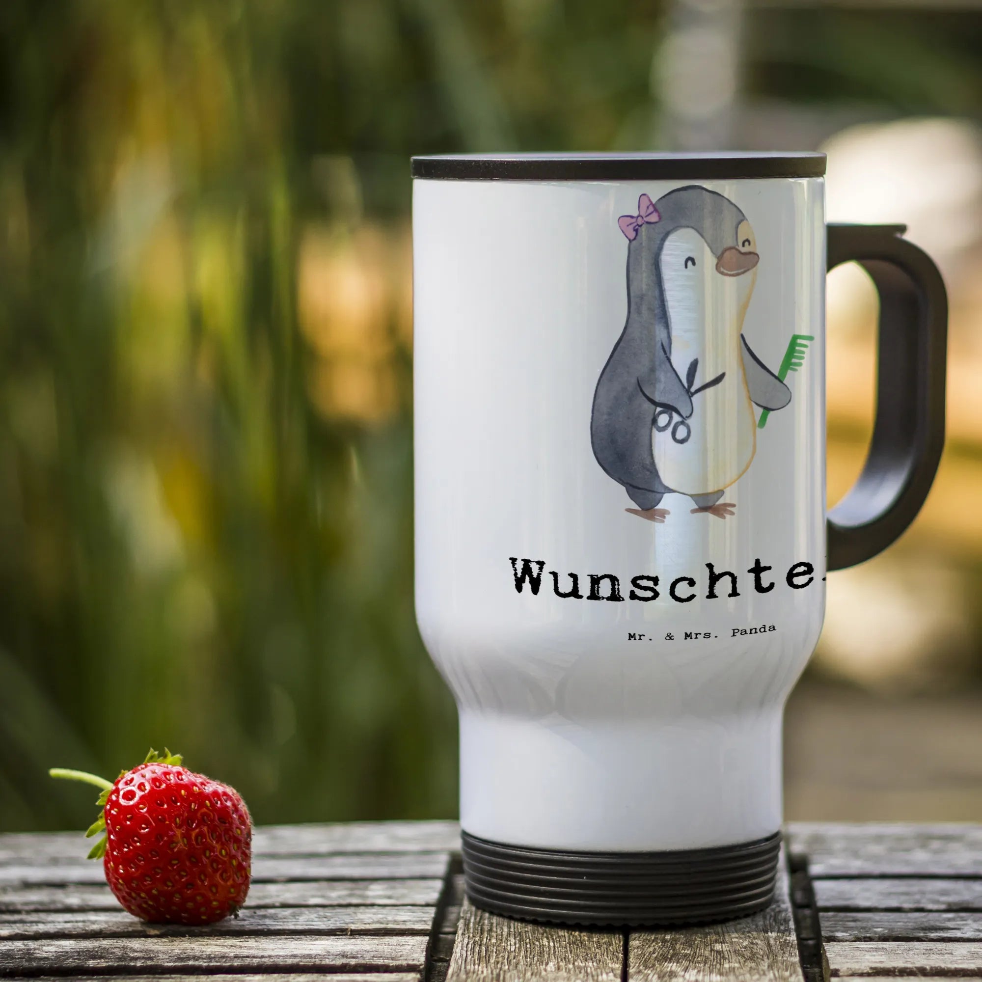 Entdecke unseren personalisierten Thermobecher "Hairstylistin mit Herz" aus der kreativen Berufe Kollektion von Mr. & Mrs. Panda! Dieser einzigartige Isolierbecher ist das perfekte Geschenk für jede Hairstylistin, die ihre Leidenschaft für das Friseurhandwerk liebt. Mit einem niedlichen Pinguin-Motiv, das mit viel Liebe handgezeichnet wurde, wird dieser Thermobecher zu deinem treuen Begleiter für Heißgetränke aller Art.