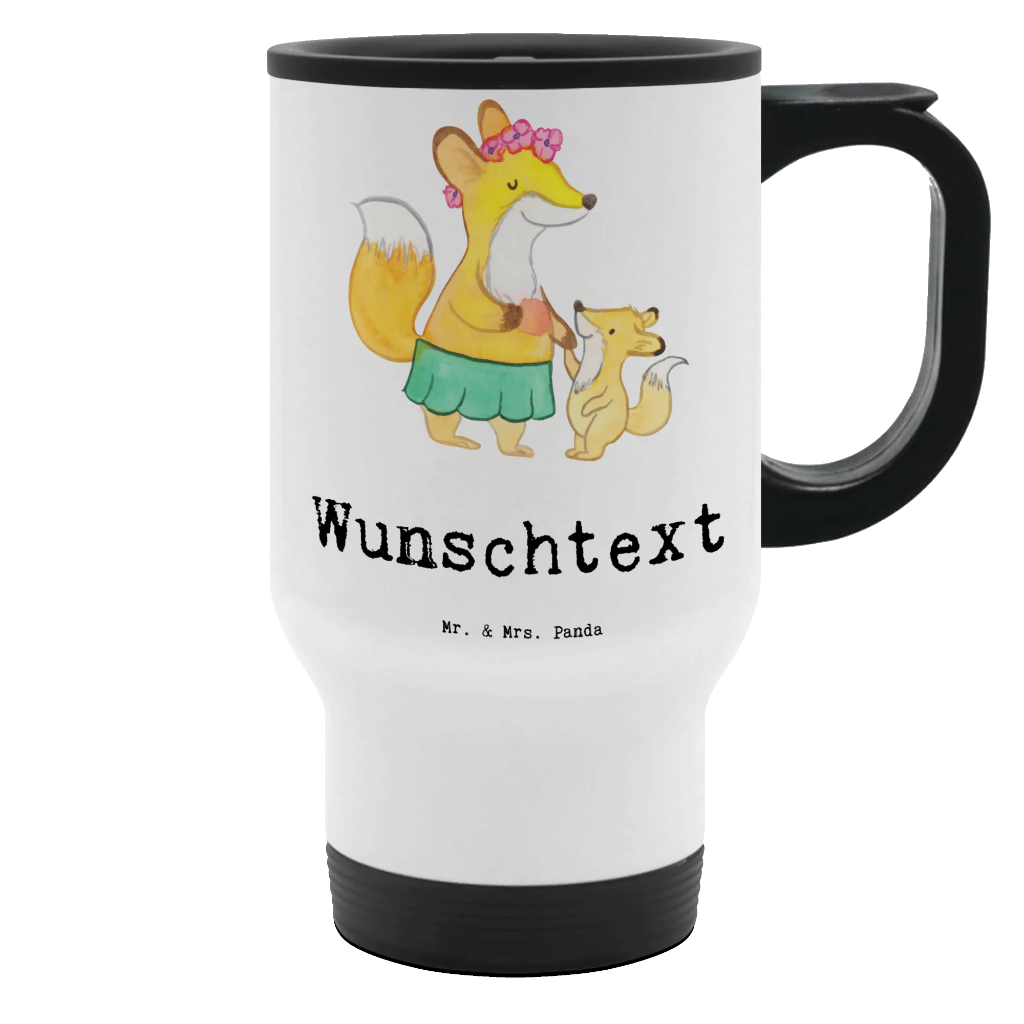 Mit einem süßen Motiv eines Fuchses, der ein fröhliches Fuchs Kind an der Hand hält, ist dieser personalisierte Kaffeebecher ein echter Blickfang. Der Spruch "Du bist nur ein halber Mensch, wenn du keine Mutter bist" bringt zum Schmunzeln und zeigt, wie wichtig Mütter in unserem Leben sind.