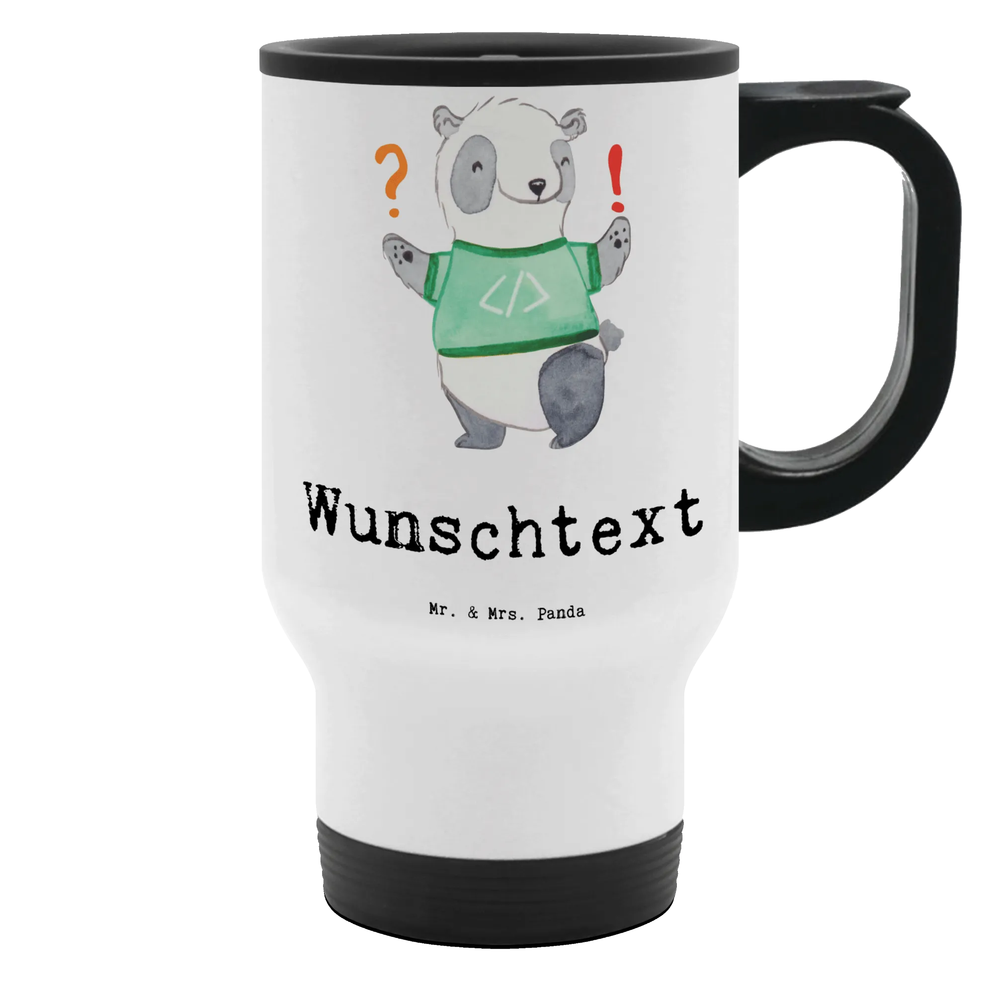 Der süße Panda auf dem Becher mit dem Spruch "Du bist nur ein halber Mensch, wenn du kein Programmierer bist" sorgt für ein Lächeln, egal wo du bist. Ob als Abschiedsgeschenk für einen Kollegen, der in den Ruhestand geht, oder als kleine Aufmerksamkeit für den fleißigen Mitarbeiter – dieser personalisierte Thermobecher ist mehr als nur ein Kaffeebecher.