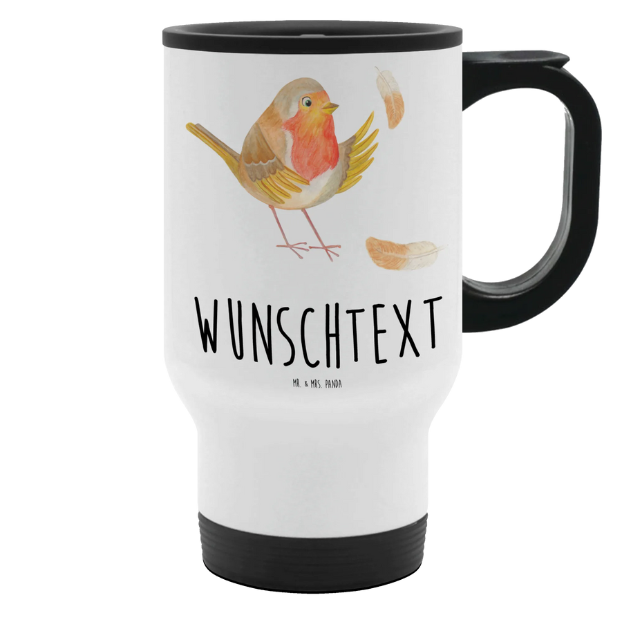 Personalisierter Thermobecher Rotkehlchen mit Federn