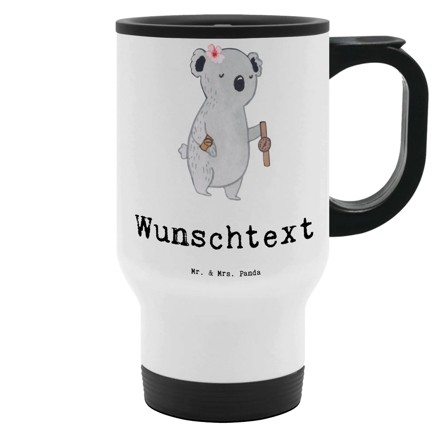 Besonders süß ist das farbenfrohe Motiv: Ein weiblicher Koala, der stolz eine Uhr präsentiert und damit den Stolz und die Leidenschaft einer Uhrmacherin unterstreicht. Der Spruch "Du bist nur ein halber Mensch, wenn du keine Uhrmacherin bist" bringt die Männlichkeit mit einem witzigen Akzent auf den Punkt und sorgt für Schmunzeln in jeder Kaffeepause.