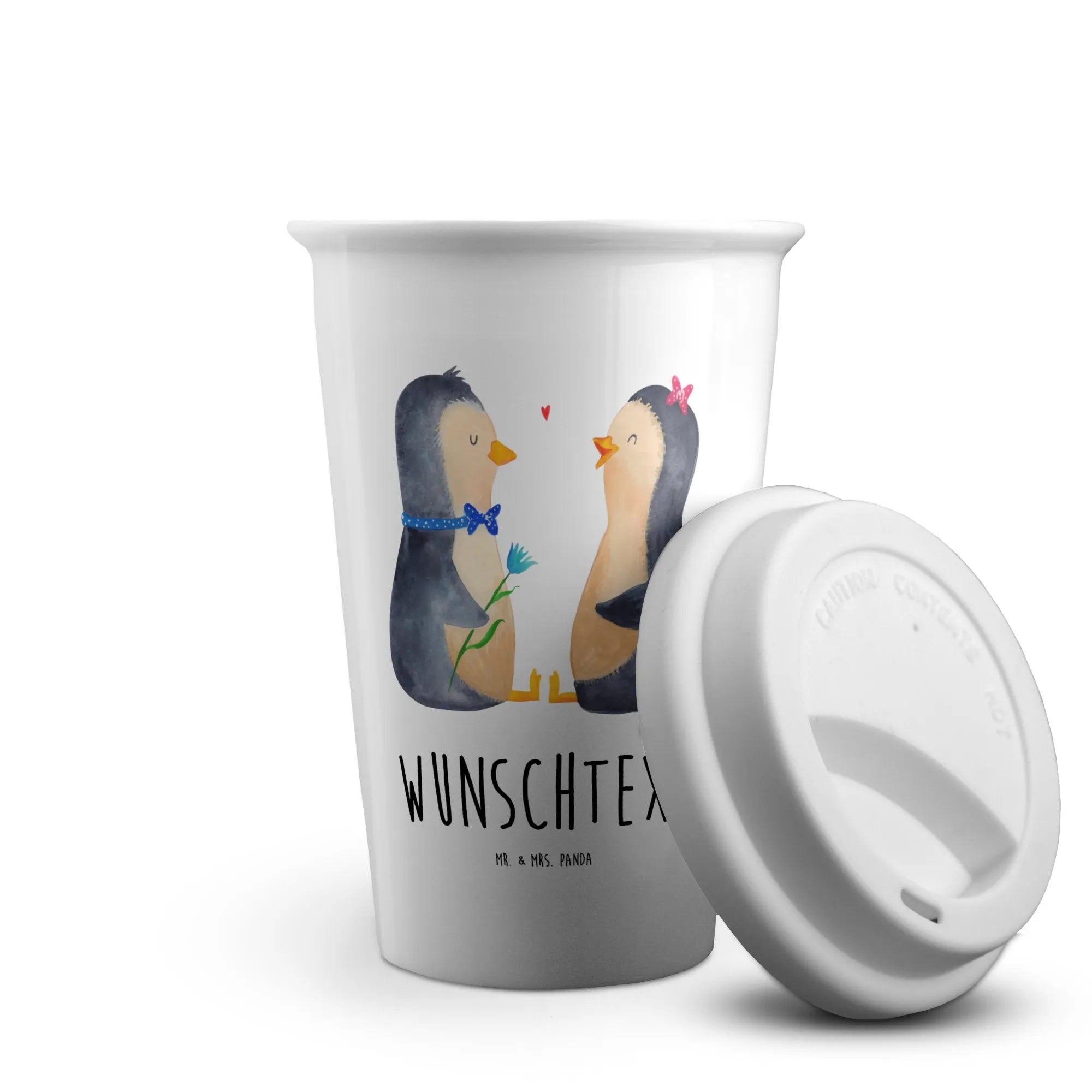 Dein perfekter Begleiter für jede Kaffeepause – unser personalisierter To Go Becher mit dem liebevollen Pinguin Pärchen aus der Pinguin-Kollektion!
