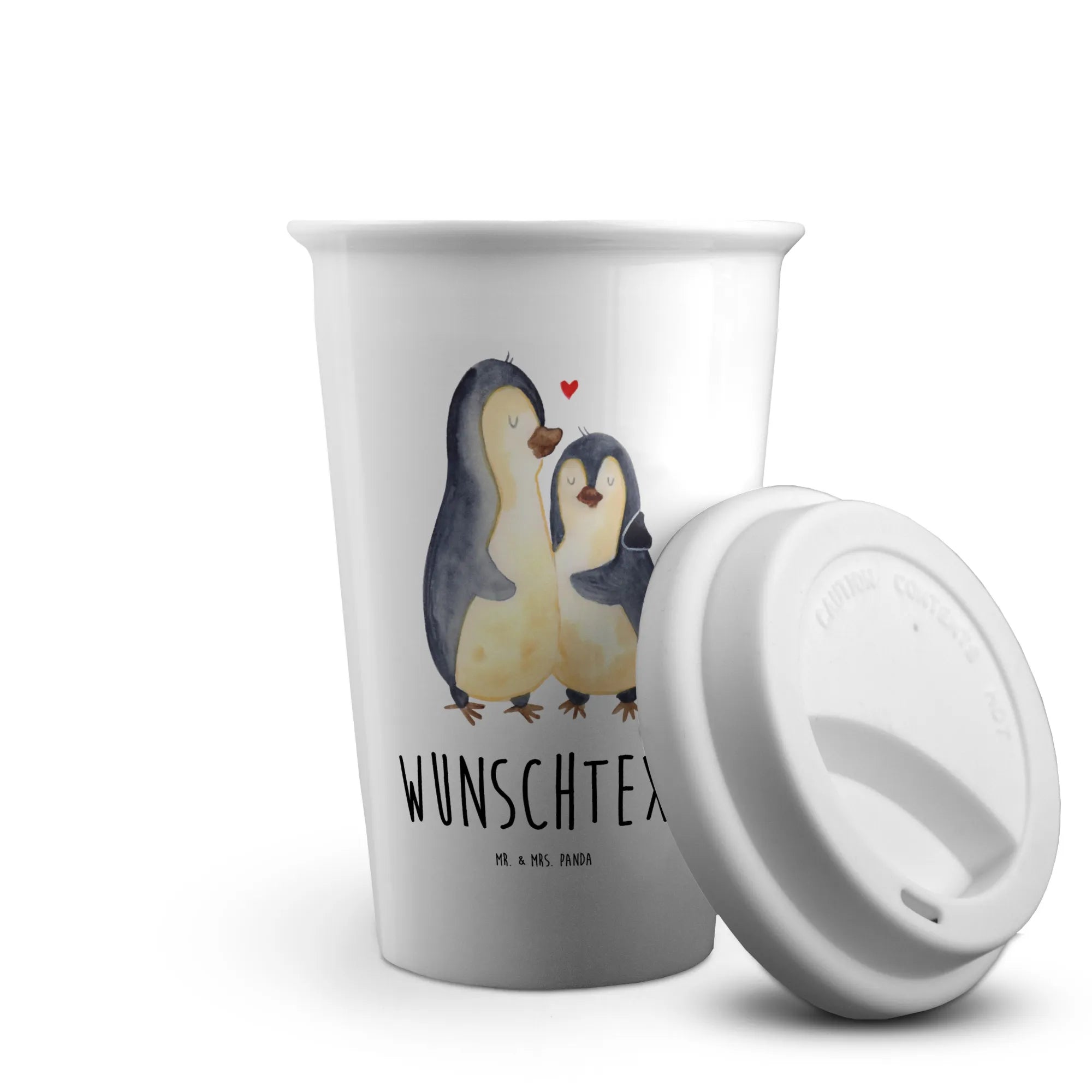 Wunderschöner personalisierbarer To Go Becher „Pinguin umarmend“ – aus der liebevollen Pinguin - Kollektion von Mr. & Mrs. Panda. Das zarte Aquarellmotiv zeigt zwei Pinguine, von denen einer den anderen schützend umarmt. Dazu der bezaubernde Spruch: „Tage mit dir sind meine absoluten Lieblingstage.“ – perfekt, um Liebe, Freundschaft und Verbundenheit zu verschenken. 💕