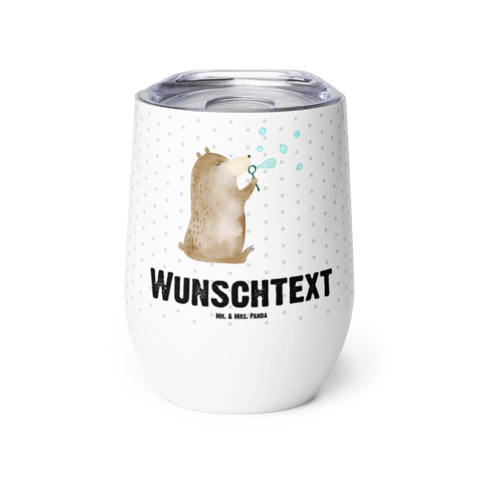 Der personalisierte Weinbecher Bär Seifenblasen von Mr. & Mrs. Panda ist nicht nur ein Becher, sondern ein liebevolles Geschenk, das jedem Lächeln ins Gesicht zaubert! Mit einem süßen Bären, der fröhlich Seifenblasen bläst, bringt dieses Design eine Portion gute Laune in jeden Alltag.