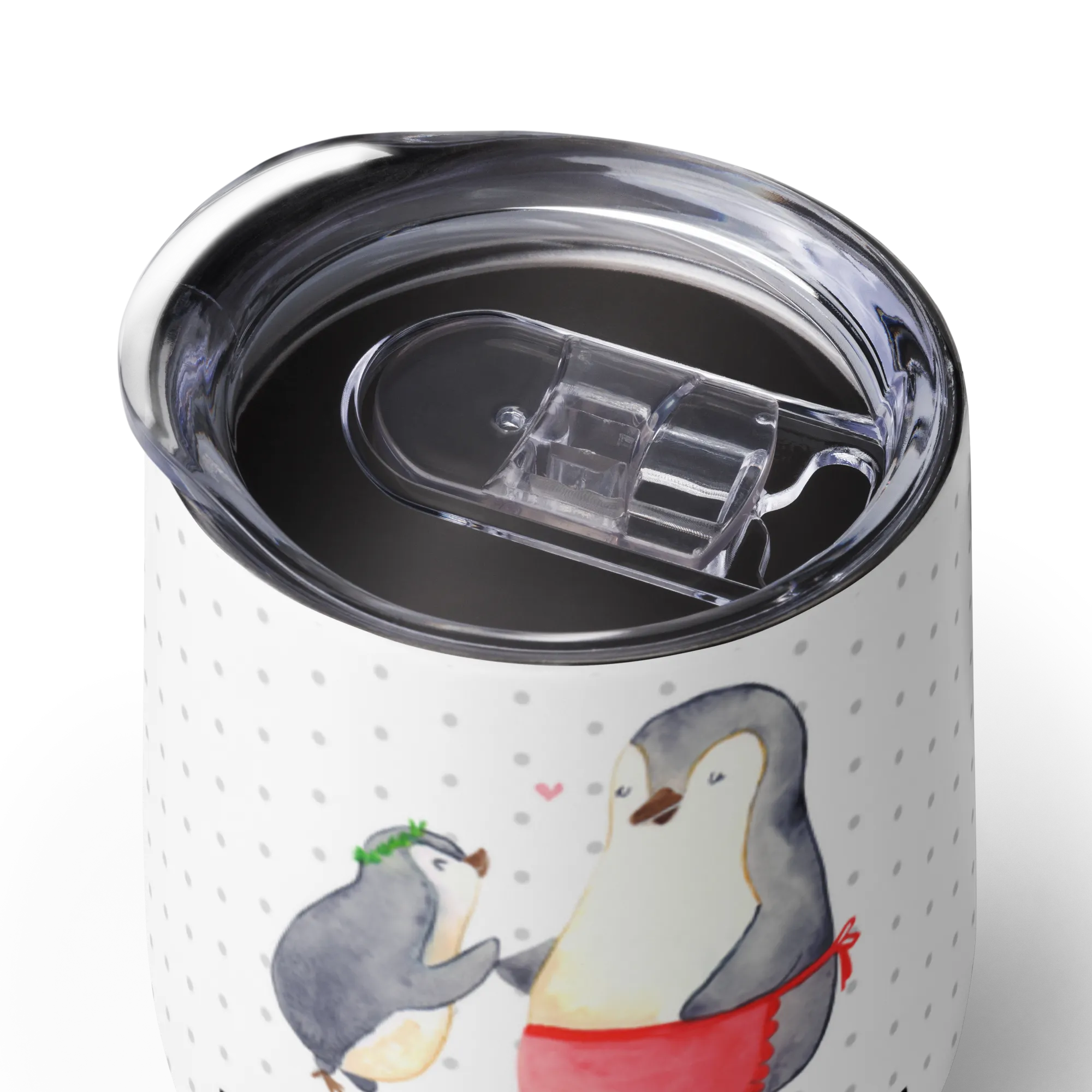 Suchst du nach dem perfekten Geschenk für deine Mama oder die besondere Frau in deinem Leben? Dann ist der personalisierte Weinbecher mit dem süßen Motiv "Pinguin mit Kind" aus unserer Familie-Kollektion genau das Richtige!