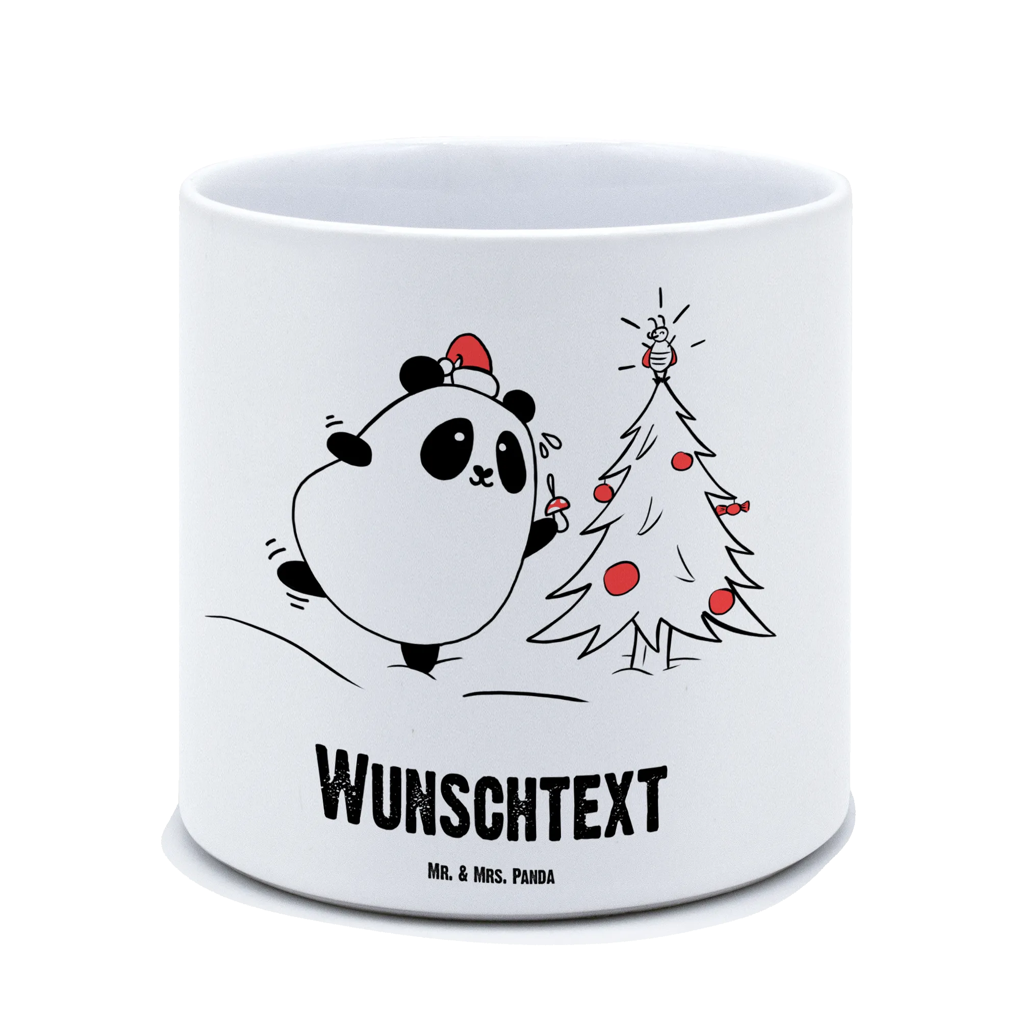 Ob für die Fensterbank, den Balkon oder die Terrasse – dieser liebevoll gestaltete Keramiktopf sorgt für eine fröhliche Weihnachtsstimmung! Der zauberhafte Weihnachts-Panda, der begeistert mit seiner Nikolausmütze deinen Weihnachtsbaum schmückt, zaubert jedem ein Lächeln ins Gesicht. Das Design, handgezeichnet von Mrs. Panda, und der liebevolle Spruch "Eine wunderschöne Weihnachtszeit!" machen diesen Blumentopf zu einem einzigartigen Geschenk, das von Herzen kommt.