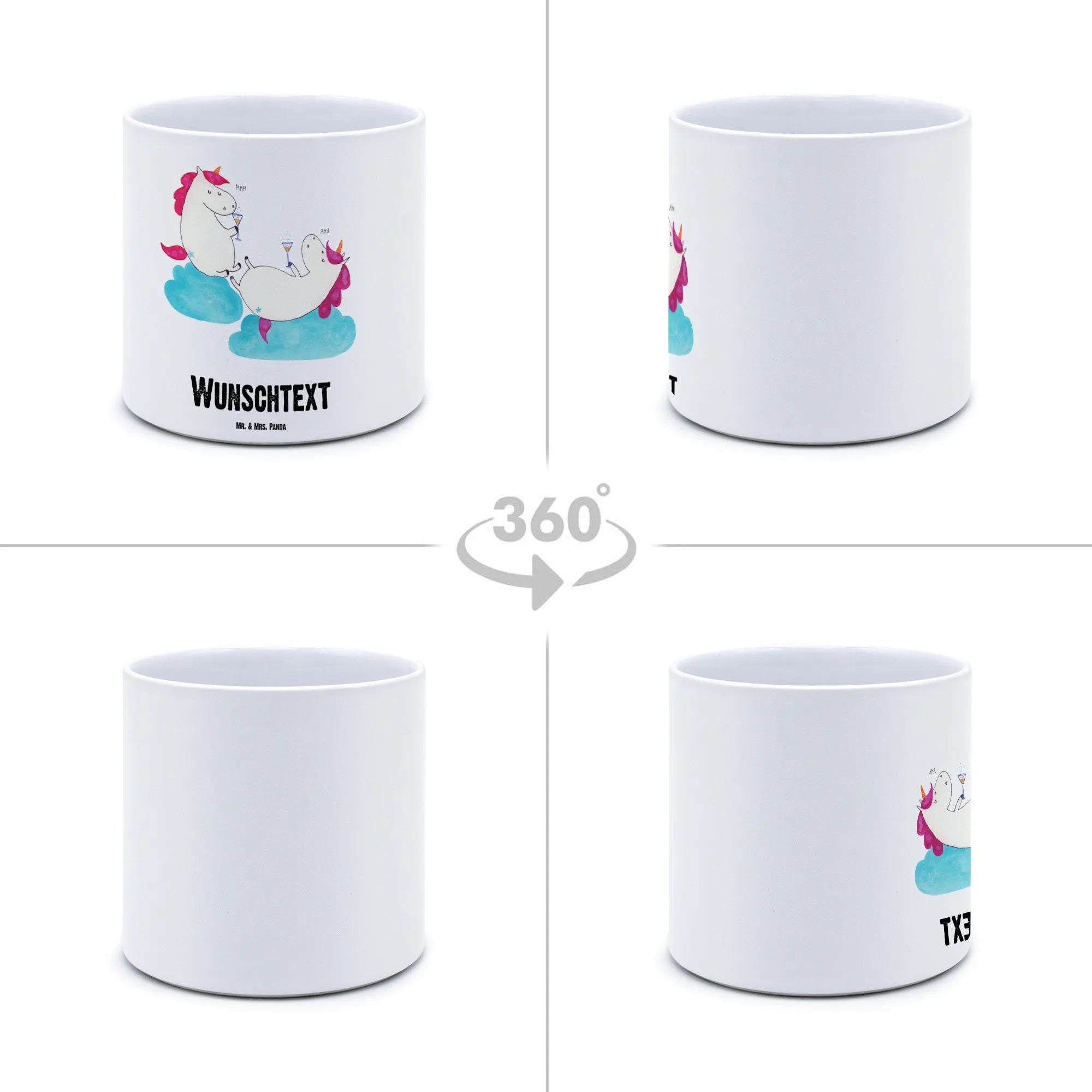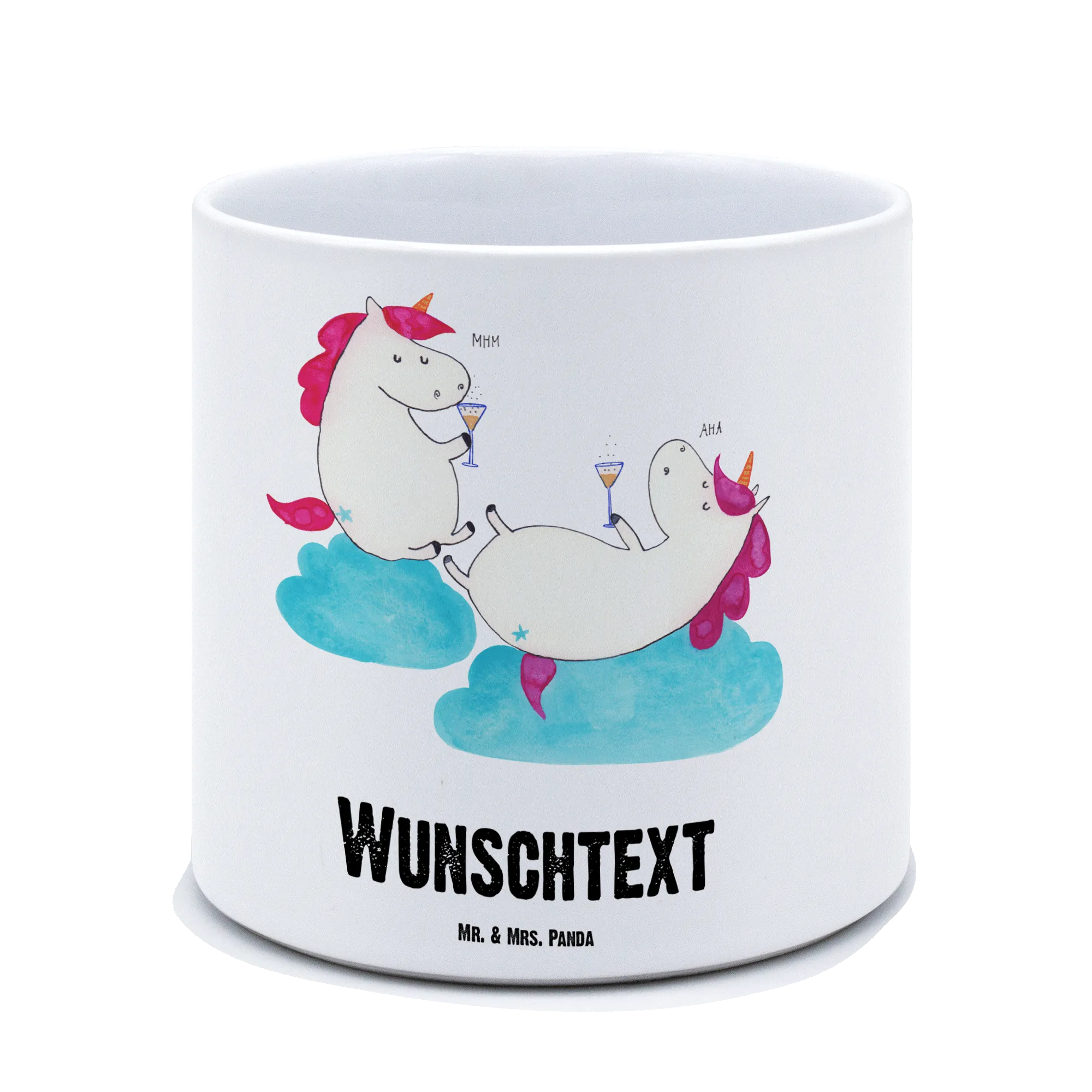 Der personalisierte XL Blumentopf Einhörner Sekt von Mr. & Mrs. Panda ist der perfekte Begleiter für alle Pflanzenliebhaber und Einhorn-Fans! Mit einem zauberhaften Einhorn-Motiv, das zwei fröhliche Einhörner zeigt, die ein Glas Sekt gemeinsam anstoßen, ist dieser Blumentopf ein echter Hingucker in jedem Raum. Ob auf der Fensterbank, dem Balkon oder der Terrasse – dieser Blumentopf zieht nicht nur bewundernde Blicke an, sondern zaubert auch ein Lächeln auf die Gesichter deiner Freunde und Liebsten!