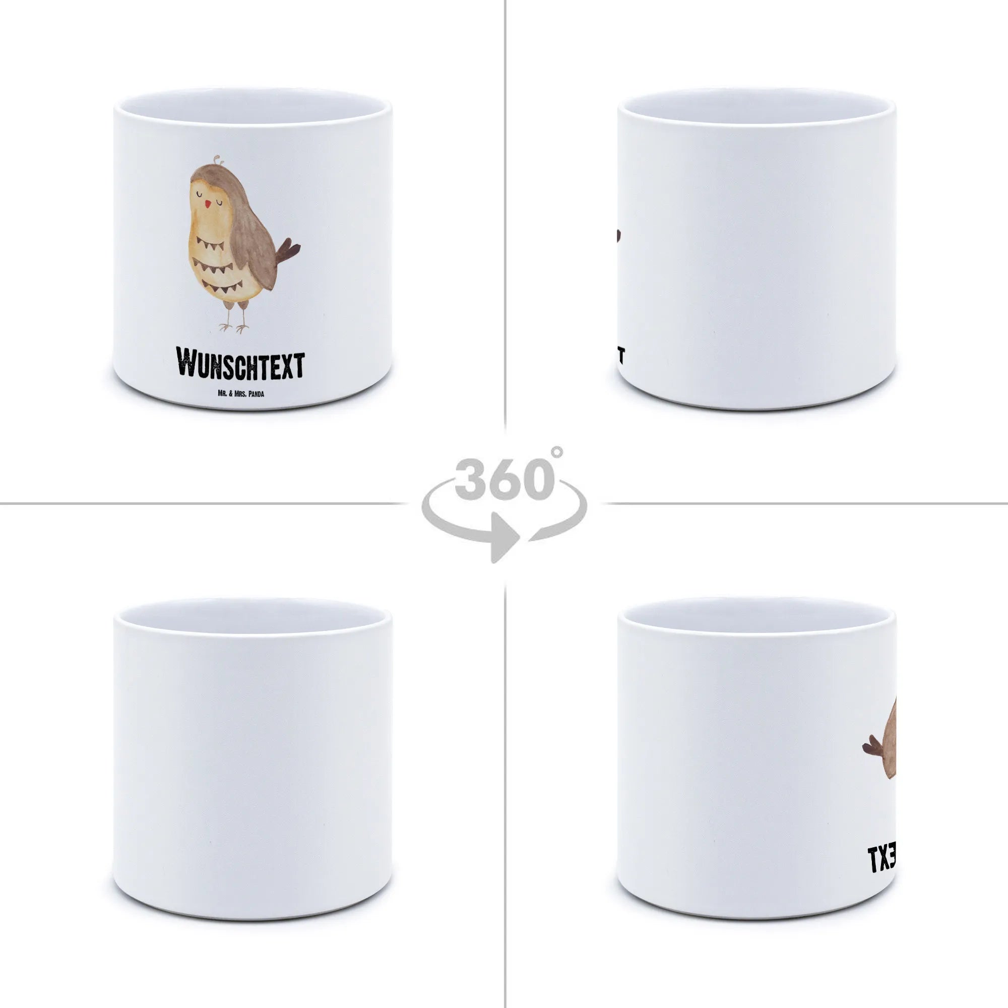 Der personalisierte XL Blumentopf Eule Zufrieden von Mr. & Mrs. Panda ist das perfekte Geschenk für alle Pflanzenliebhaber und Eulen-Ästheten! Mit einem charmanten Motiv, das eine lächelnde Eule zeigt, bringt dieser Blumentopf nicht nur Farbe in dein Zuhause, sondern auch Freude in dein Herz. Das liebevoll gestaltete Design mit dem Spruch 'I love you forever and owlways' macht ihn zu einem tollen Geschenk für viele Gelegenheiten.