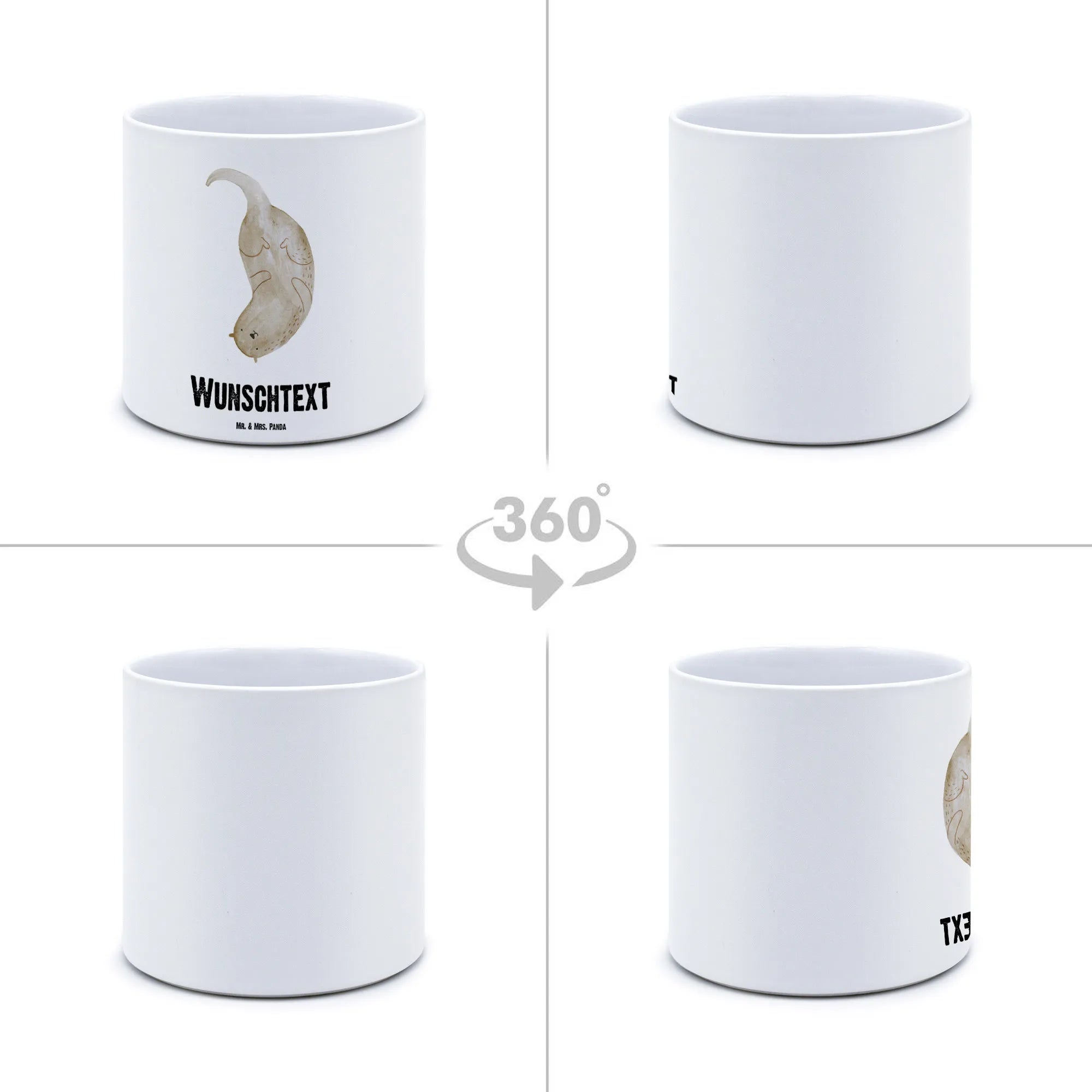 Suchst du ein einzigartiges Geschenk, das nicht nur hübsch ist, sondern auch eine persönliche Note hat? Dann ist der personalisierte XL Blumentopf "Otter kopfüber" aus der Otter-Kollektion von Mr. & Mrs. Panda genau das richtige für dich! Mit seinen charmanten Maßen von 135 mm Höhe und einem Durchmesser von 142 mm bietet dieser liebevoll gestaltete Keramiktopf genügend Platz für Kräuter und Pflanzen. Egal, ob auf deinem Balkon, der Terrasse, im Garten oder einfach auf deiner Fensterbank – dieser Blumentopf setzt überall tolle Akzente.