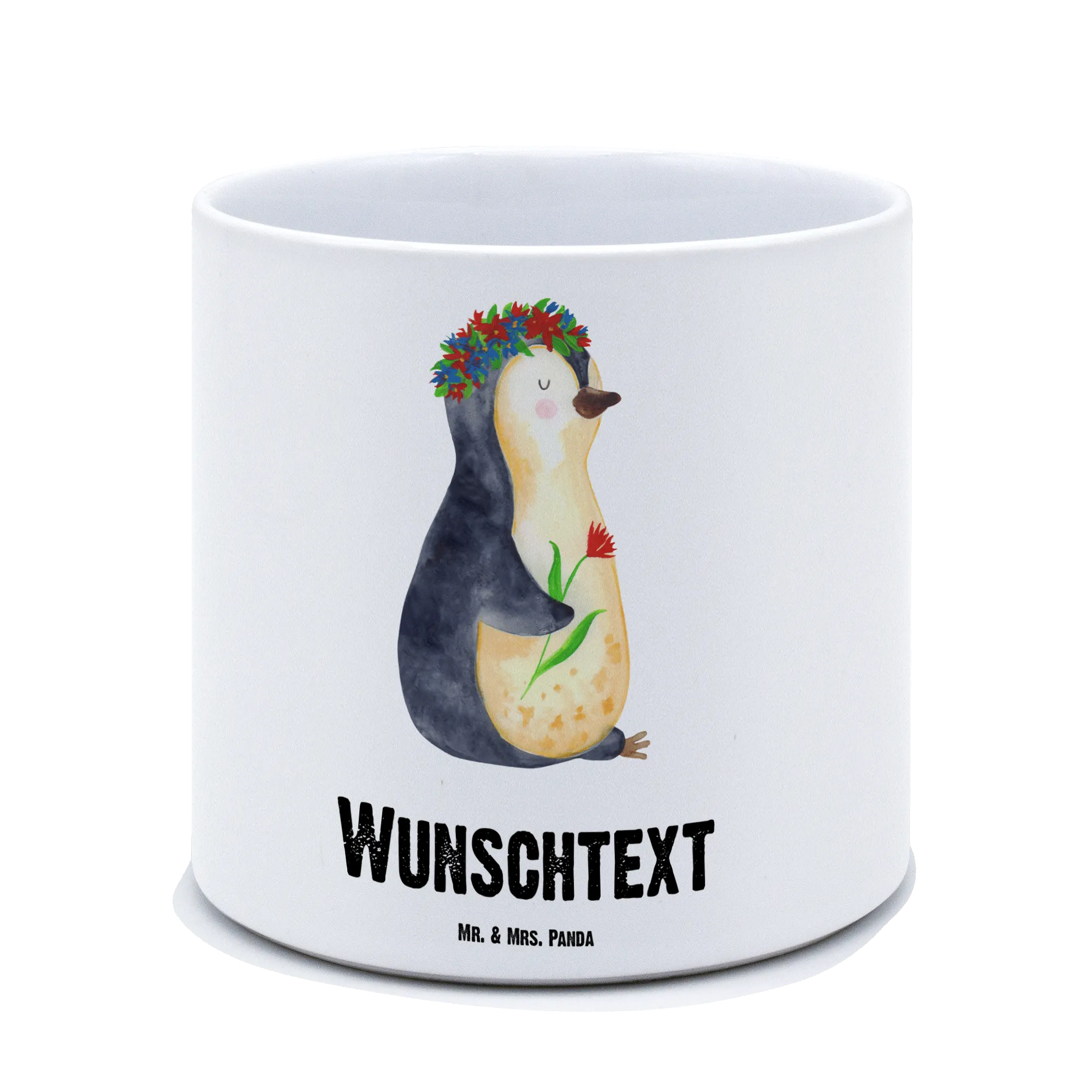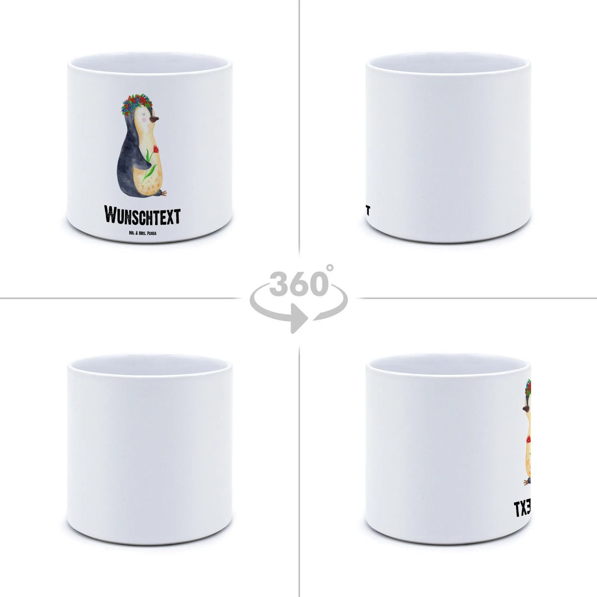 Personalisierter XL Blumentopf Pinguin Blumenkranz