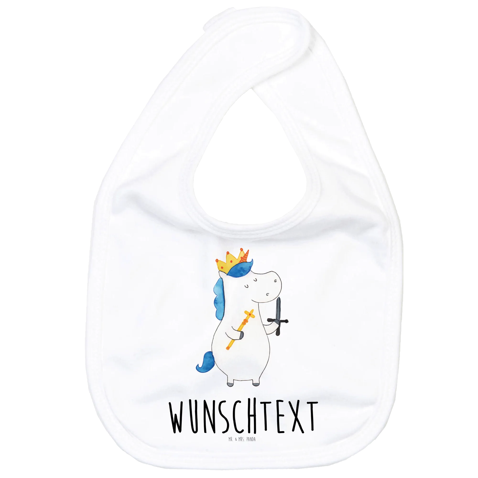Das personalisierte Babylätzchen Einhorn König mit Schwert aus der zauberhaften Einhorn - Kollektion von Mr. & Mrs. Panda ist das perfekte Geschenk zur Geburt oder zur Babyparty.