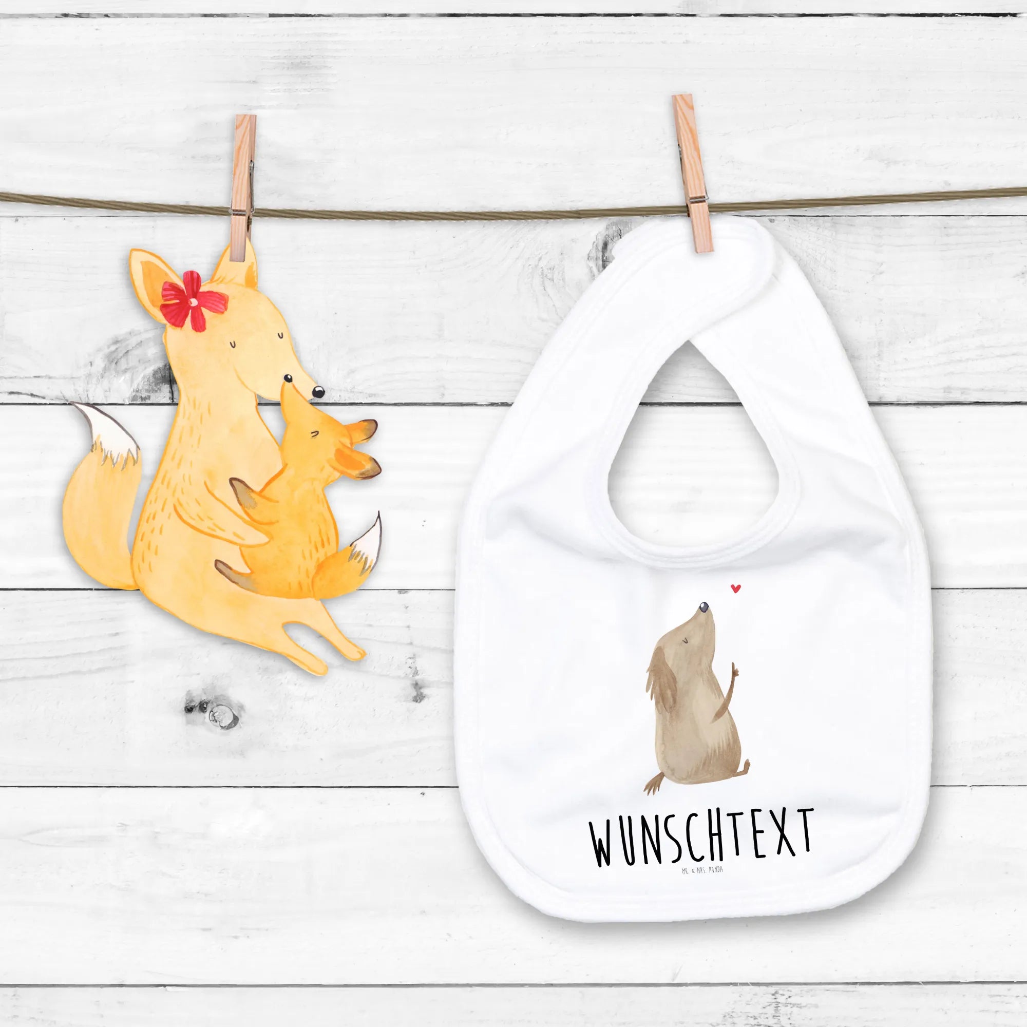 Das personalisierte Babylätzchen mit dem süßen Motiv "Hund Liebe" aus unserer Hunde Kollektion ist das perfekte Geschenk für frisch gebackene Eltern und Tierliebhaber! Jedes Mal, wenn Dein kleiner Schatz mit seinem Lätzchen gefüttert wird, wird das Herz der Eltern höherschlagen. David und Nadine, ein verliebtes Paar und stolze Hundebesitzer, haben sich bei der Geburt ihres kleinen Leo für dieses Lätzchen entschieden. Der niedliche Hund, der auch ein kleines Herz zeigt, macht dieses Lätzchen zu etwas ganz Besonderem.