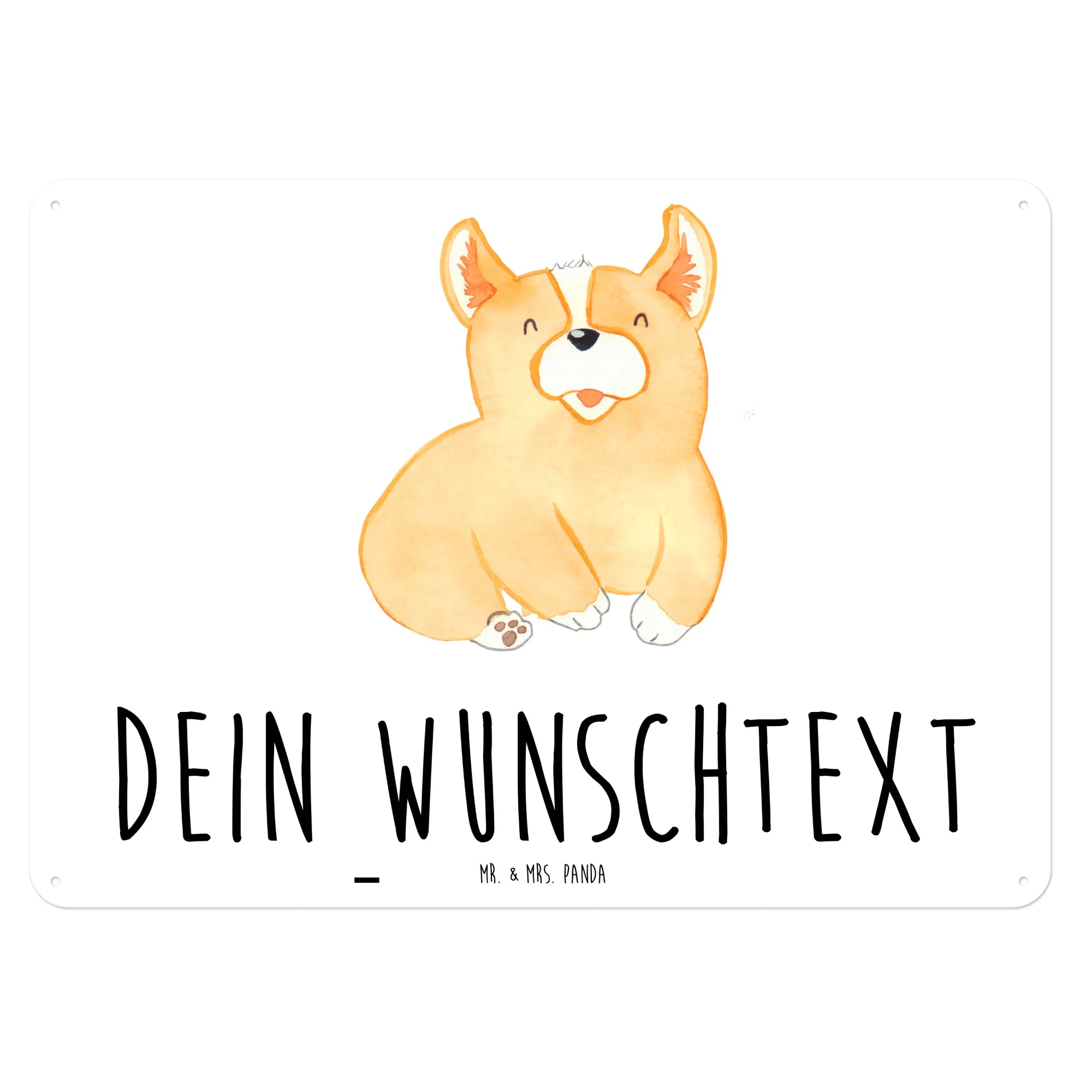 Suchst du nach dem perfekten Geschenk für einen Hundeliebhaber? Dann ist das personalisierte Blechschild mit dem süßen Corgie-Motiv von Mr. & Mrs. Panda genau das richtige!