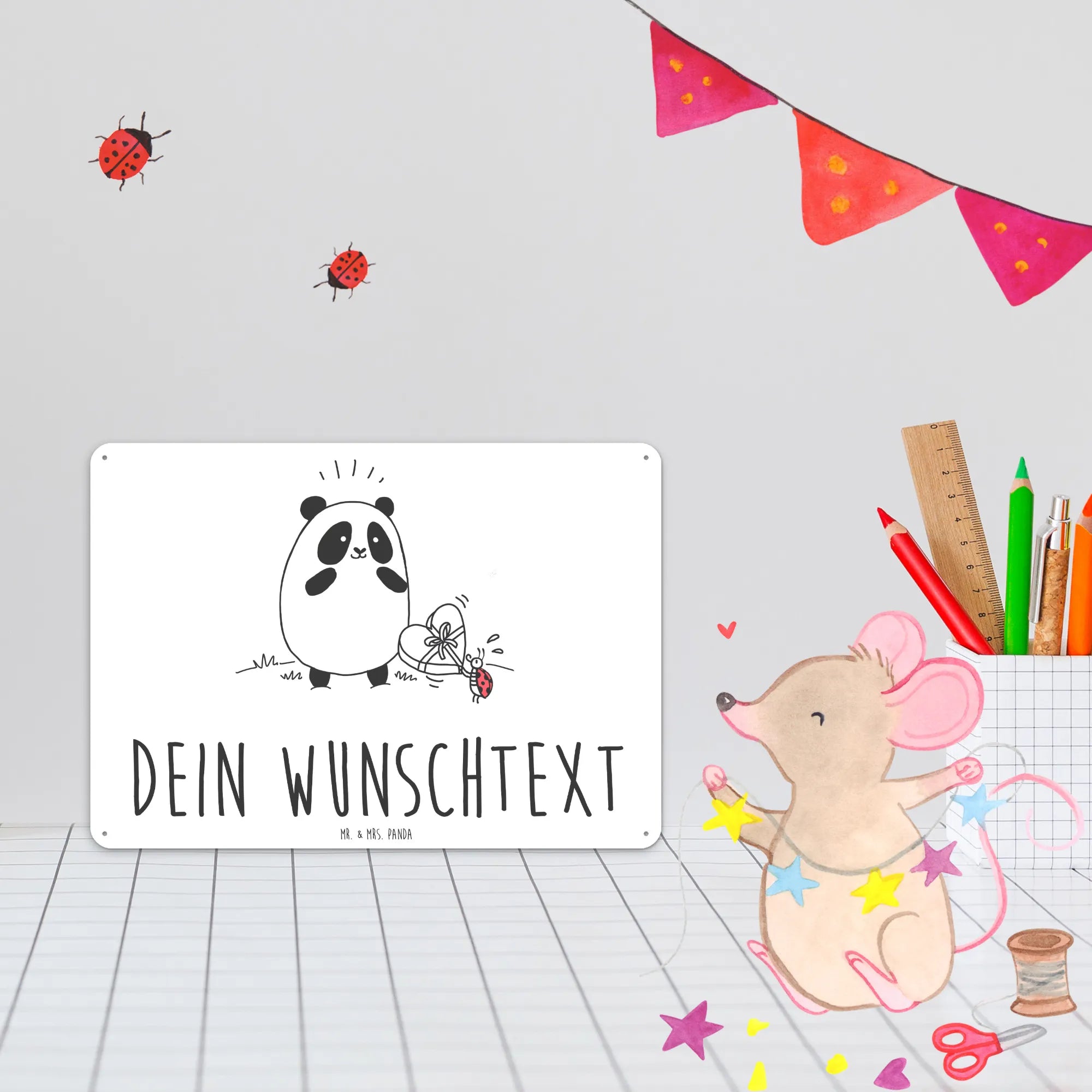 Das personalisierte Blechschild "Easy & Peasy Dankeschön" von Mr. & Mrs. Panda ist das perfekte Geschenk für jeden Anlass! Möchtest du jemandem einfach mal Danke sagen? Dieses wunderschöne Metallschild bringt die Message klar und fröhlich rüber! Das liebevoll gestaltete Motiv zeigt einen fröhlichen Panda, der dankbar eine Schachtel Pralinen von einem süßen Marienkäfer entgegen nimmt. Was für eine bezaubernde Art, seine Wertschätzung auszudrücken!