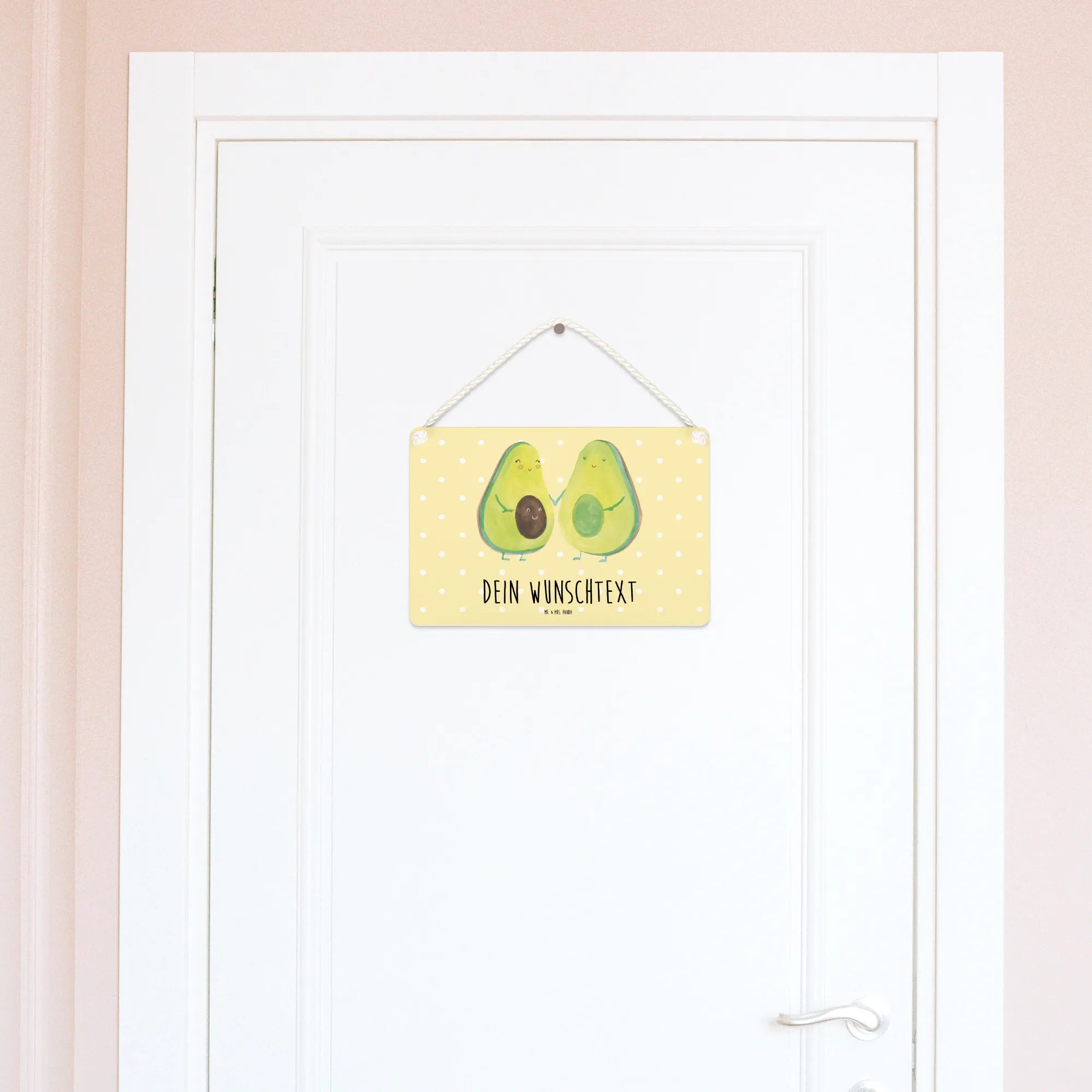 Personalisiertes Deko Schild Avocado Pärchen - DIN A6 - Gelb Pastell