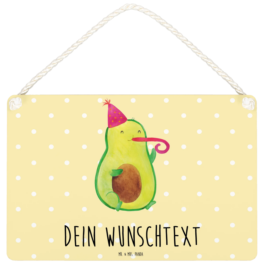 Personalisiertes Deko Schild Avocado Partyhupe - DIN A6 - Gelb Pastell