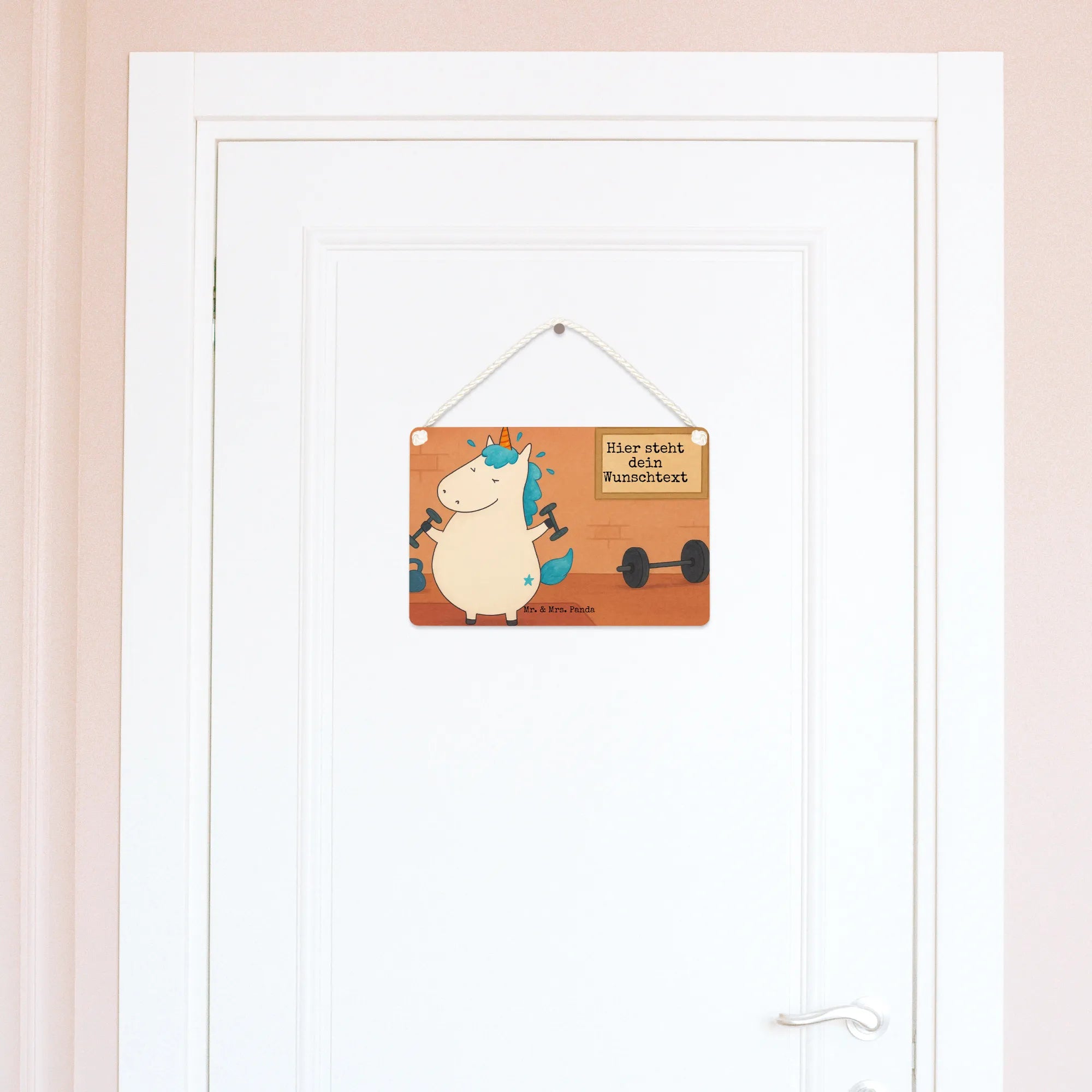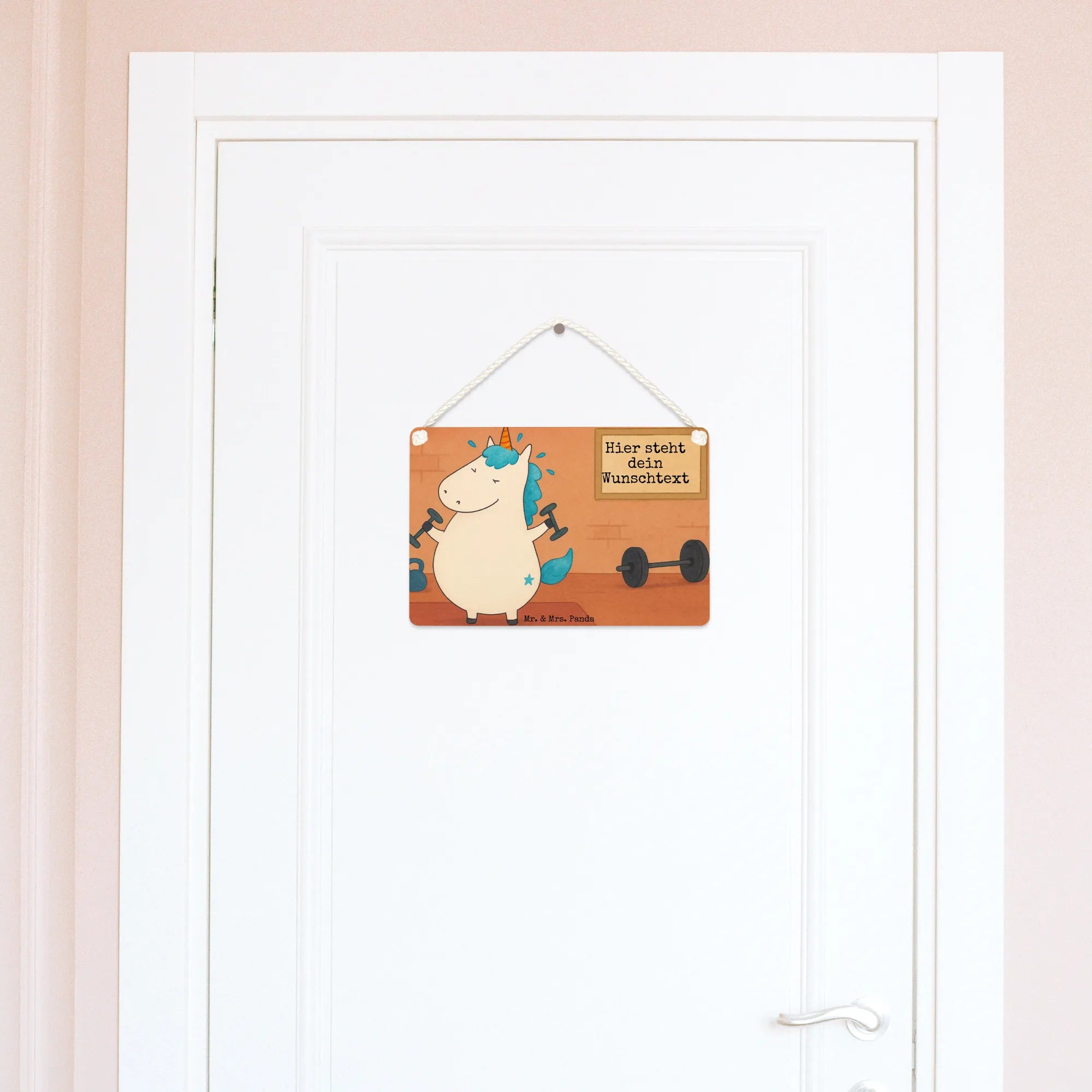 Personalisiertes Deko Schild Einhorn Fitness Design – Mr. & Mrs. Panda